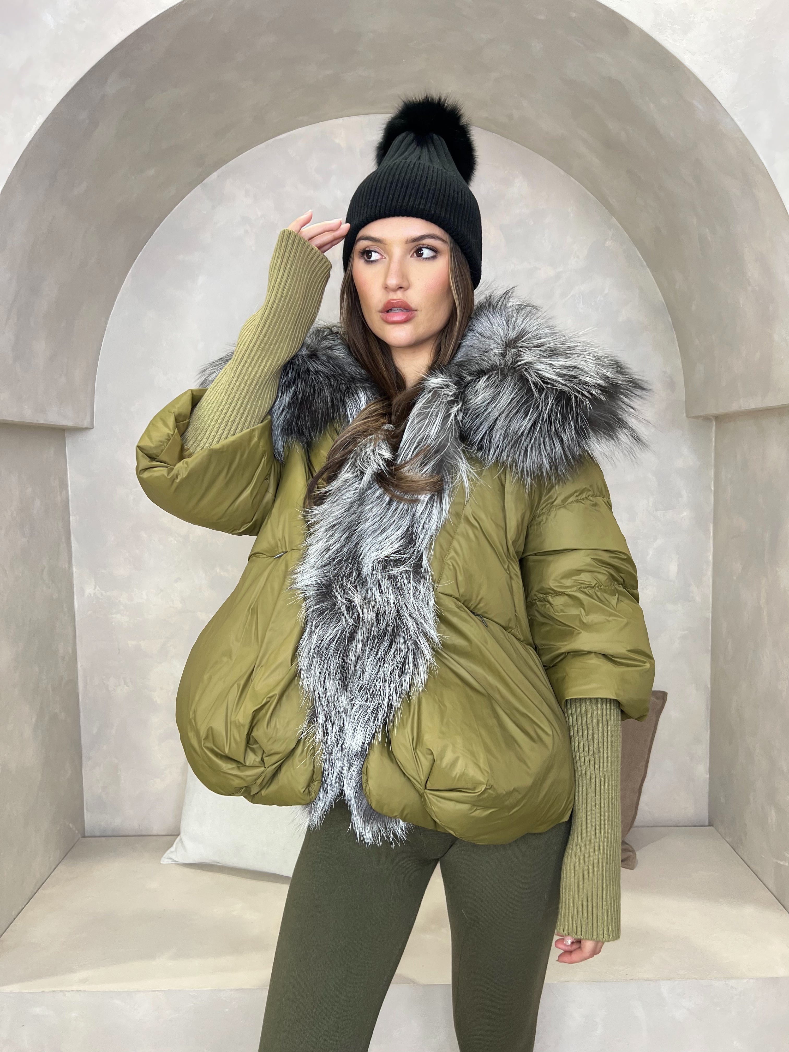 - Shell: 100% Polyester, Filling: 90% Goose Down, Fur: 100% Real Fur