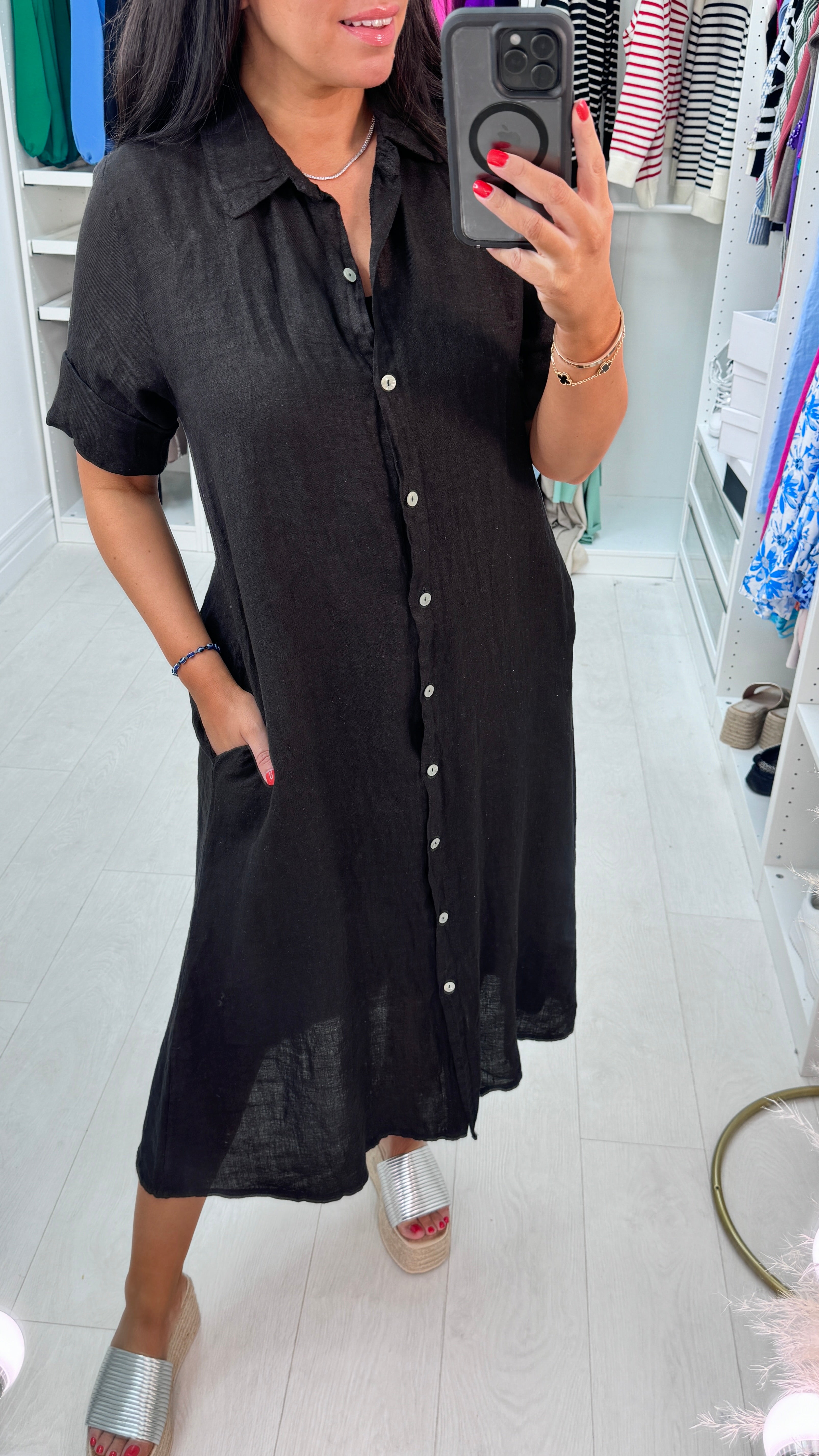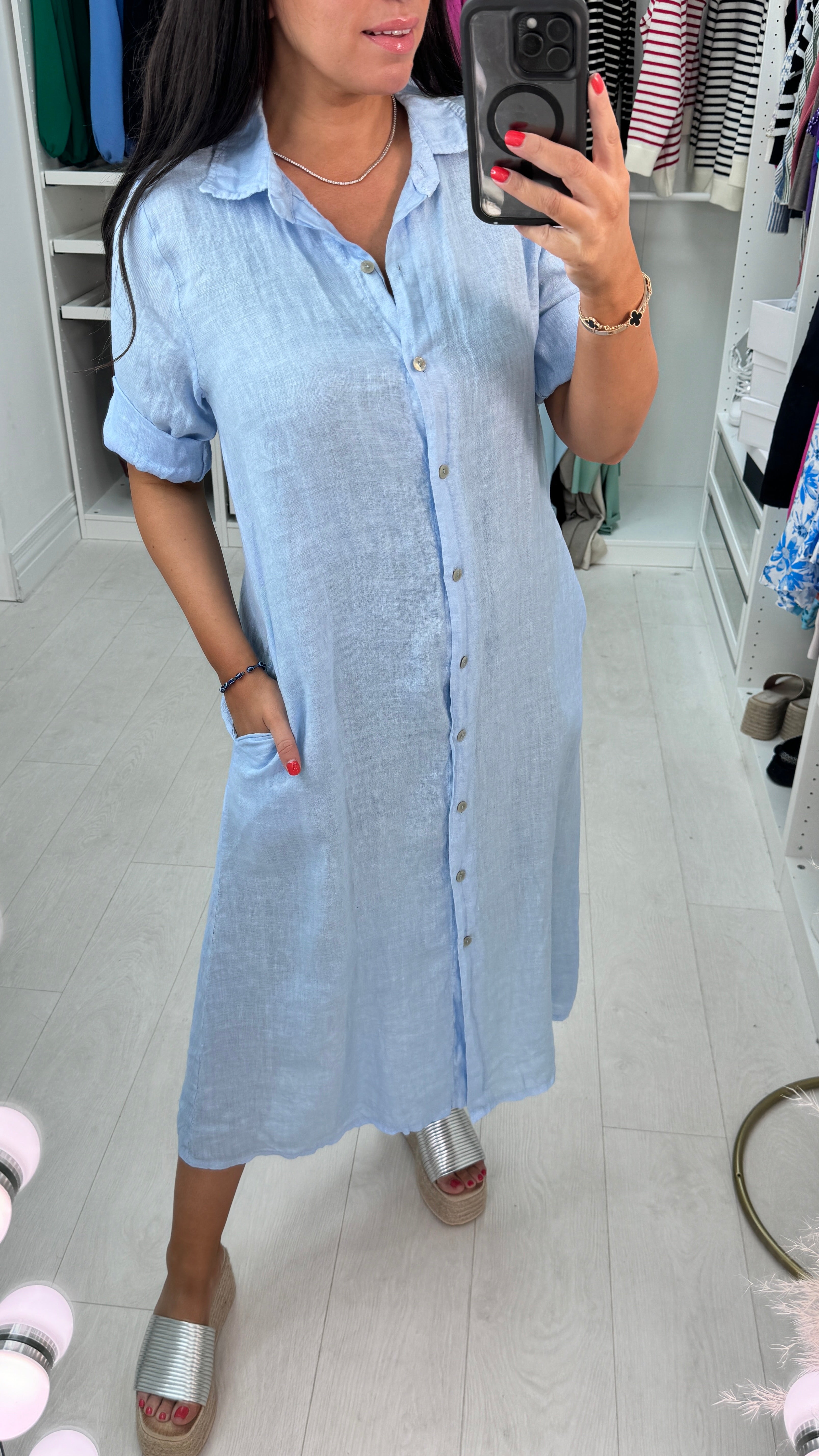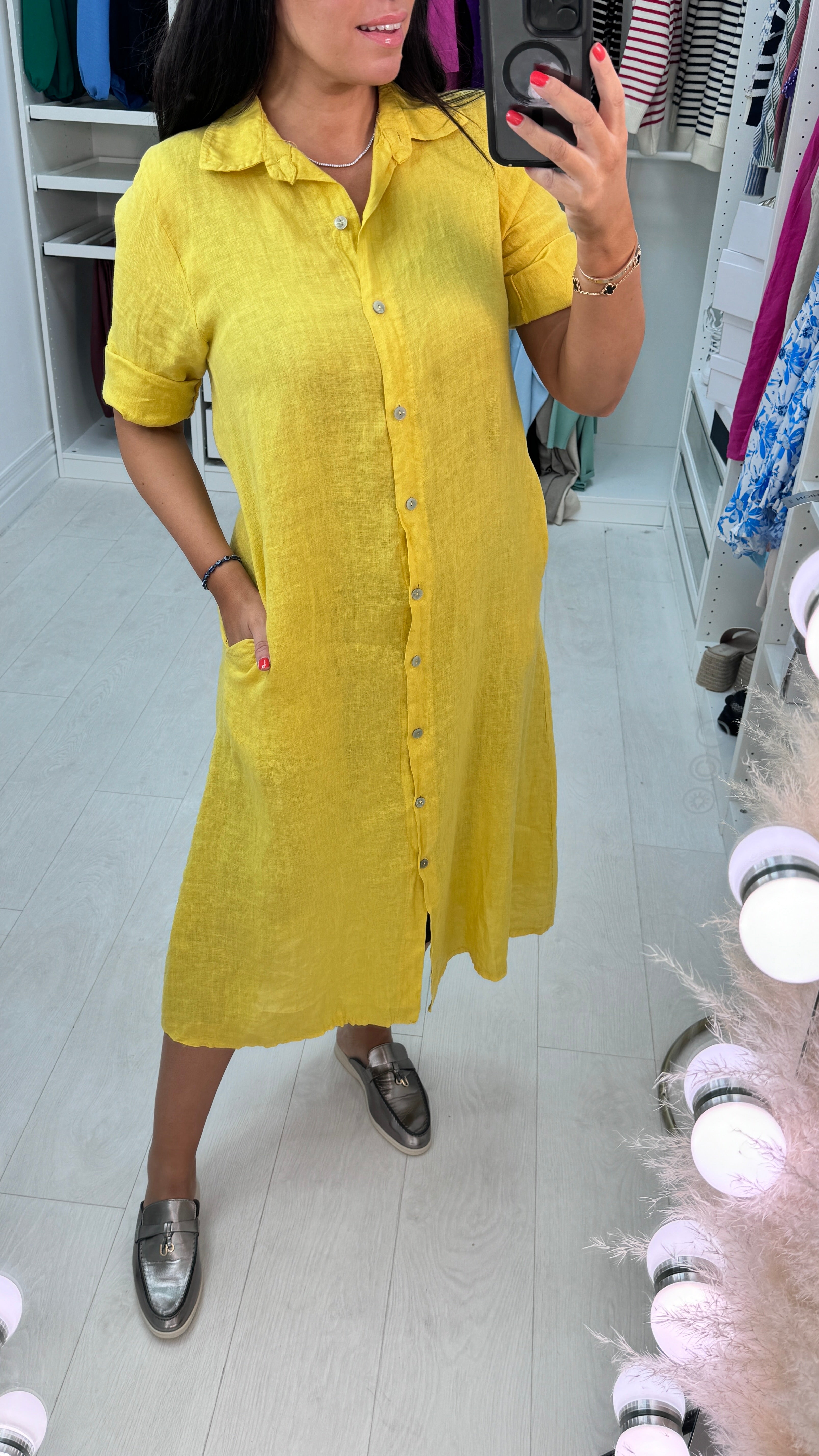 Leilani Button Front Linen Shirt Dress