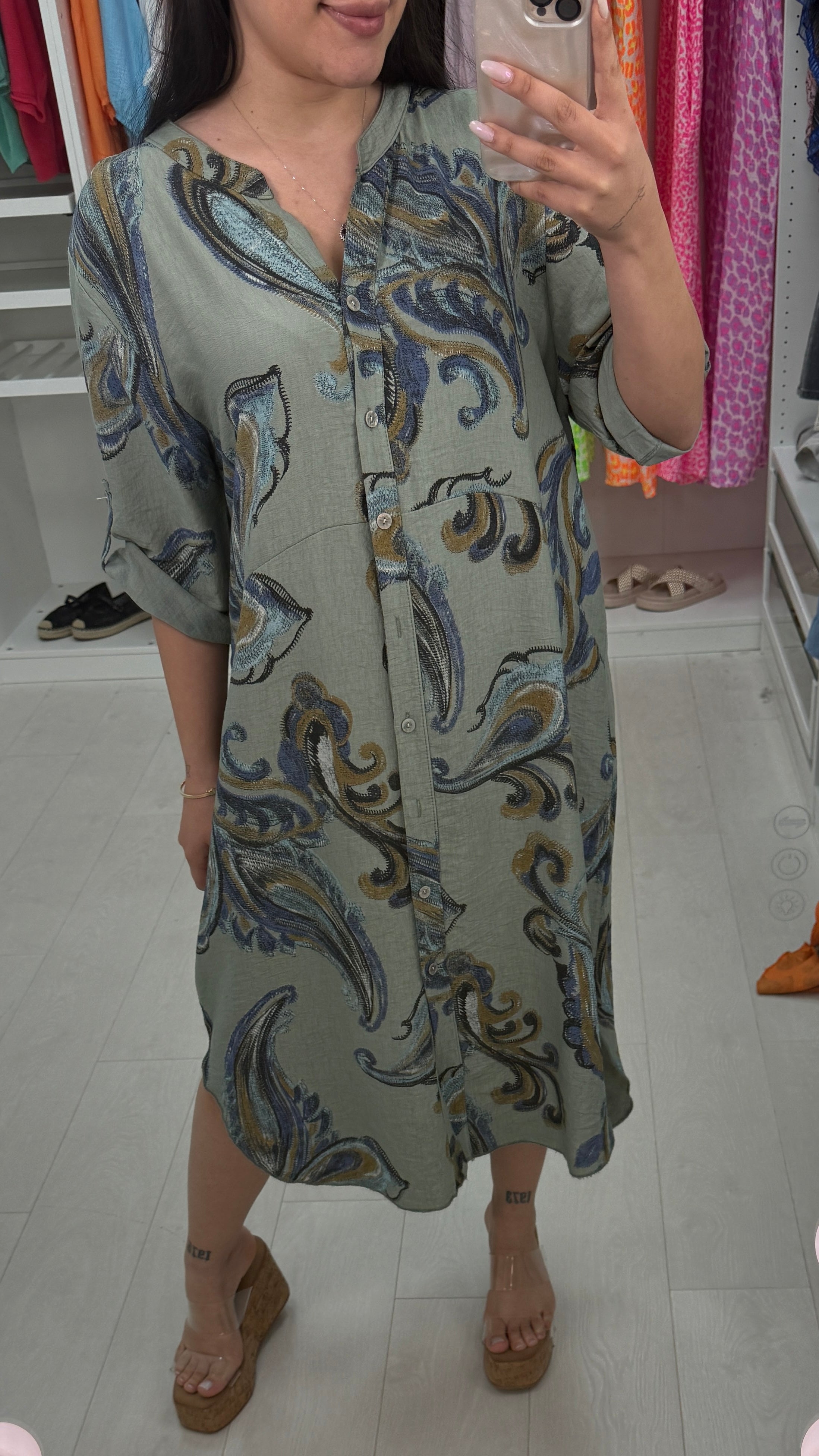 Lenette Paisley Print Loose Fit Button Front Dress