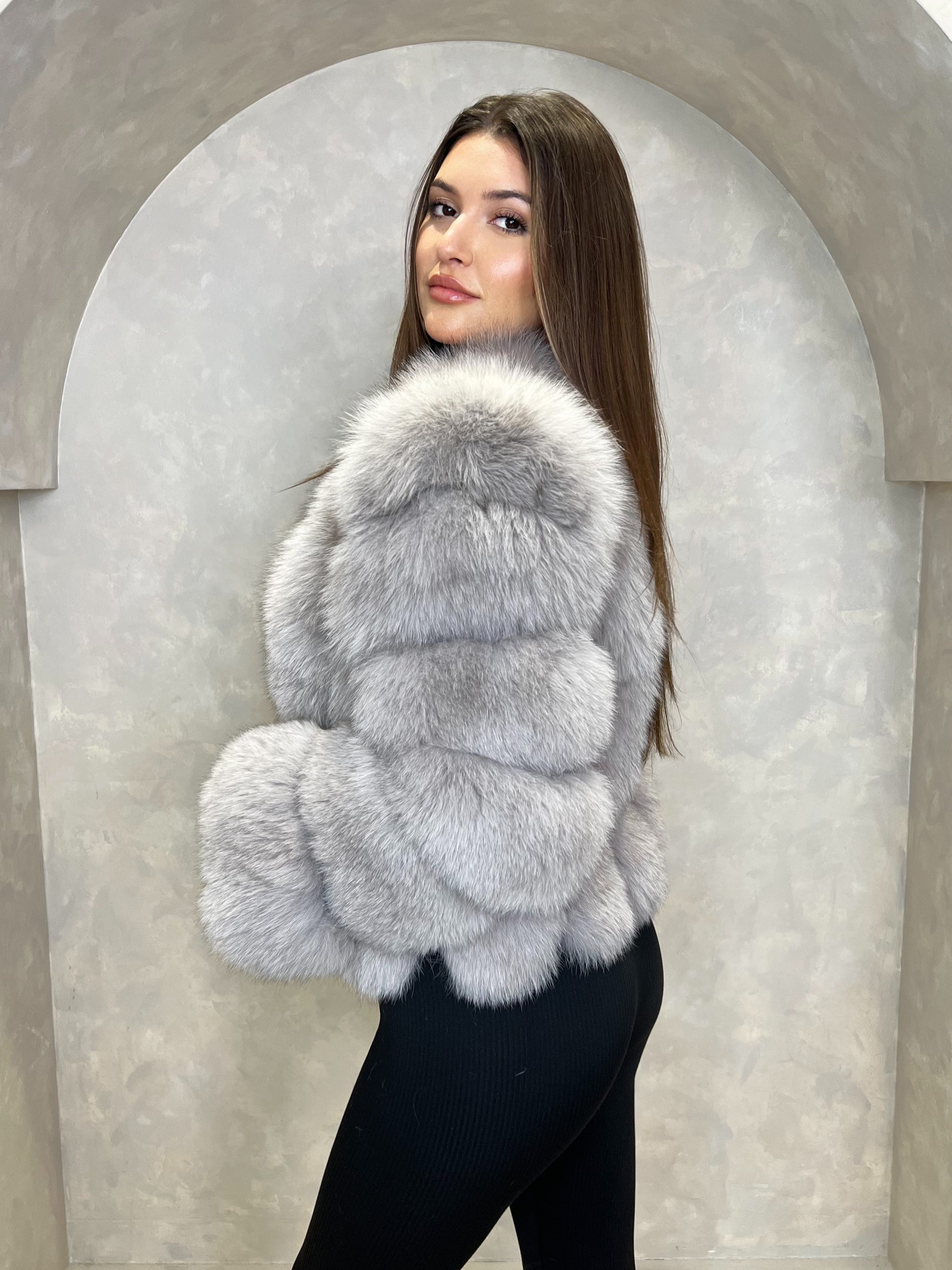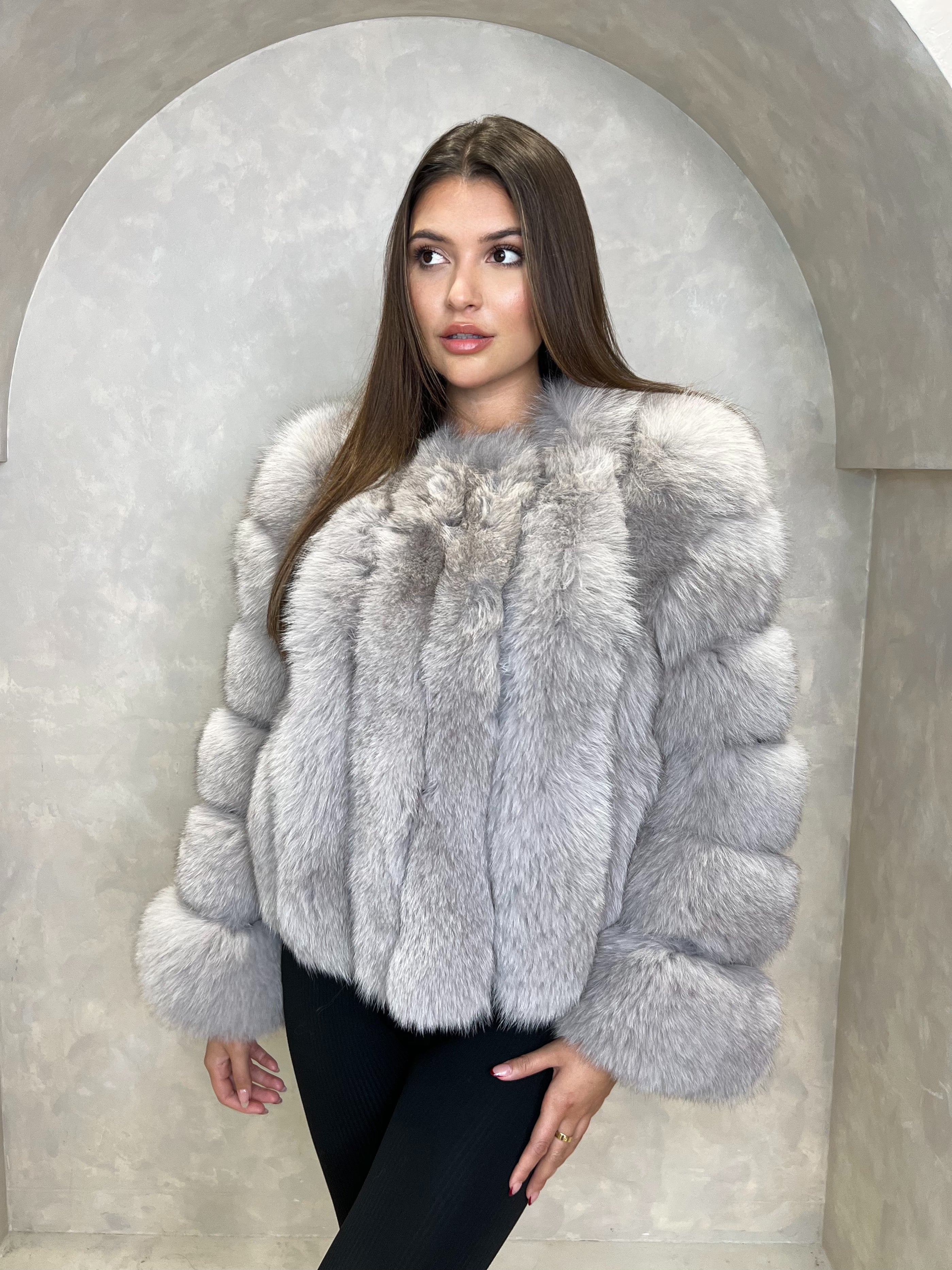 Light Grey Luxury Fur Vertical Pelt Coat