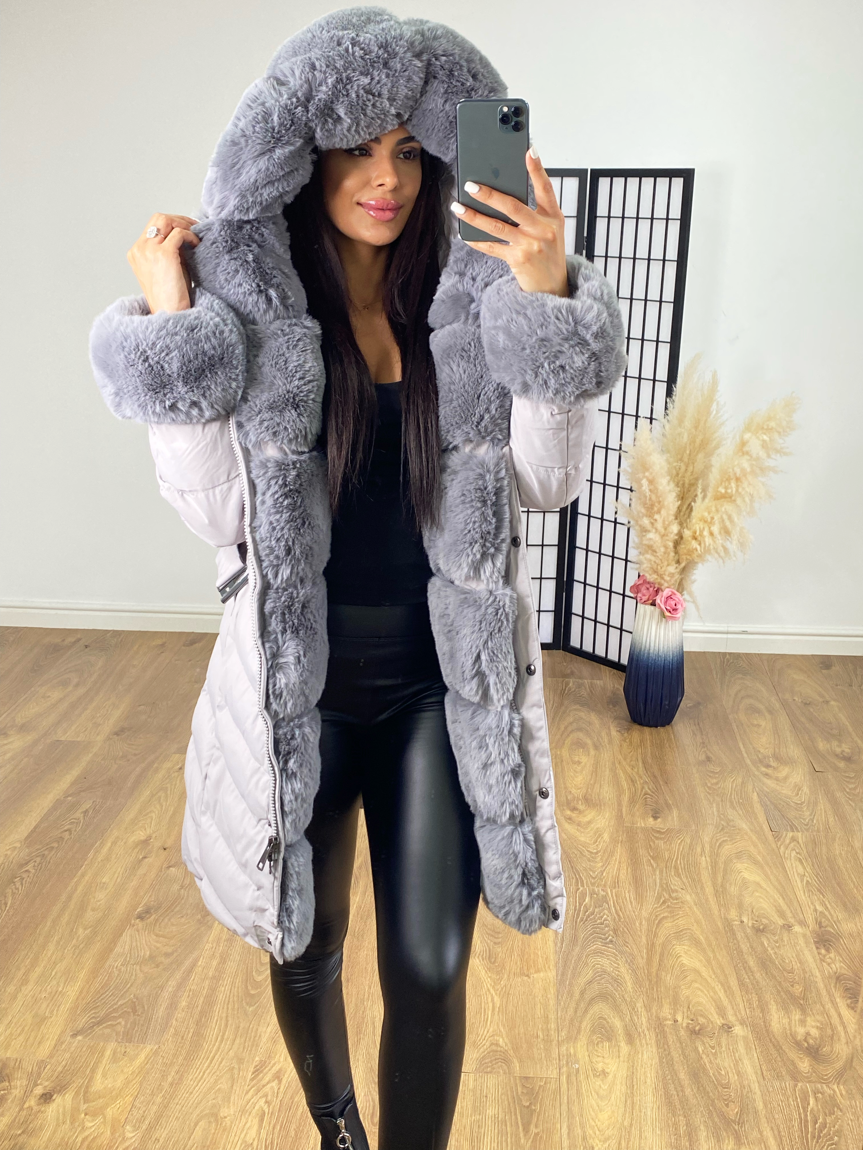 Lolita Grey Faux Fur Panel Hooded Coat