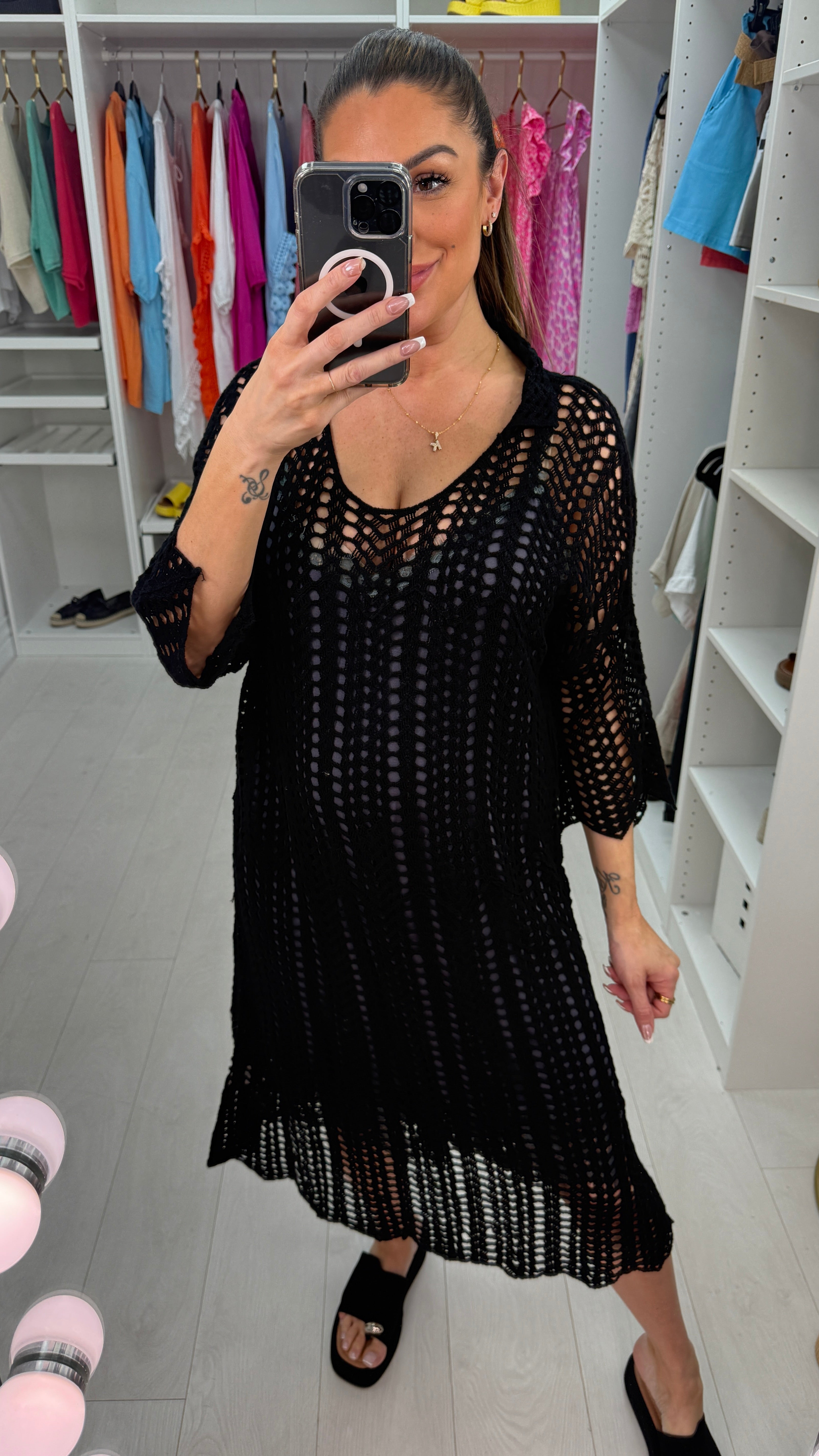Mandie Plain 3/4 Sleeve Crochet Dress