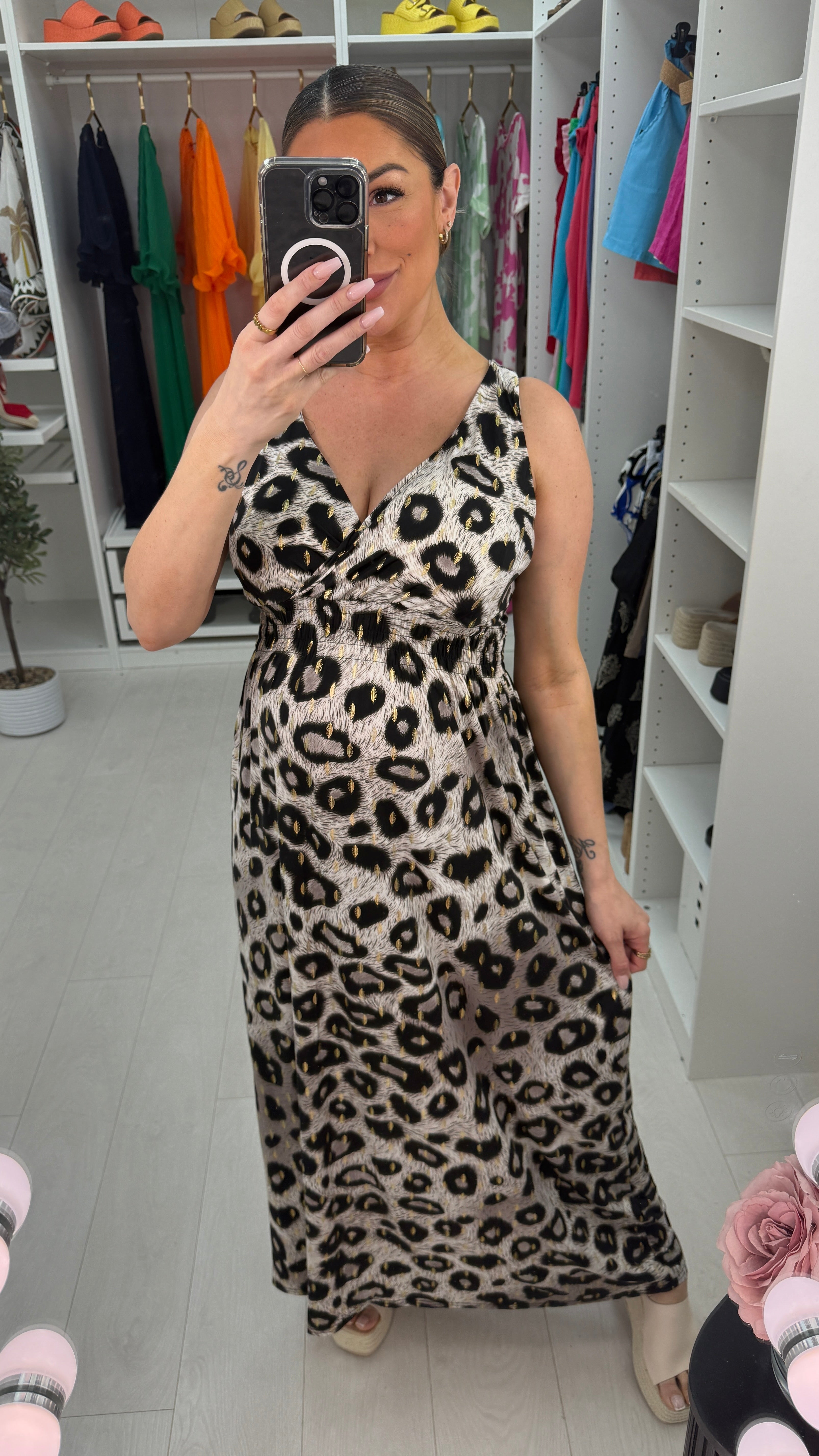 Milo Leopard Print Wrap Front Magic Maxi Dress