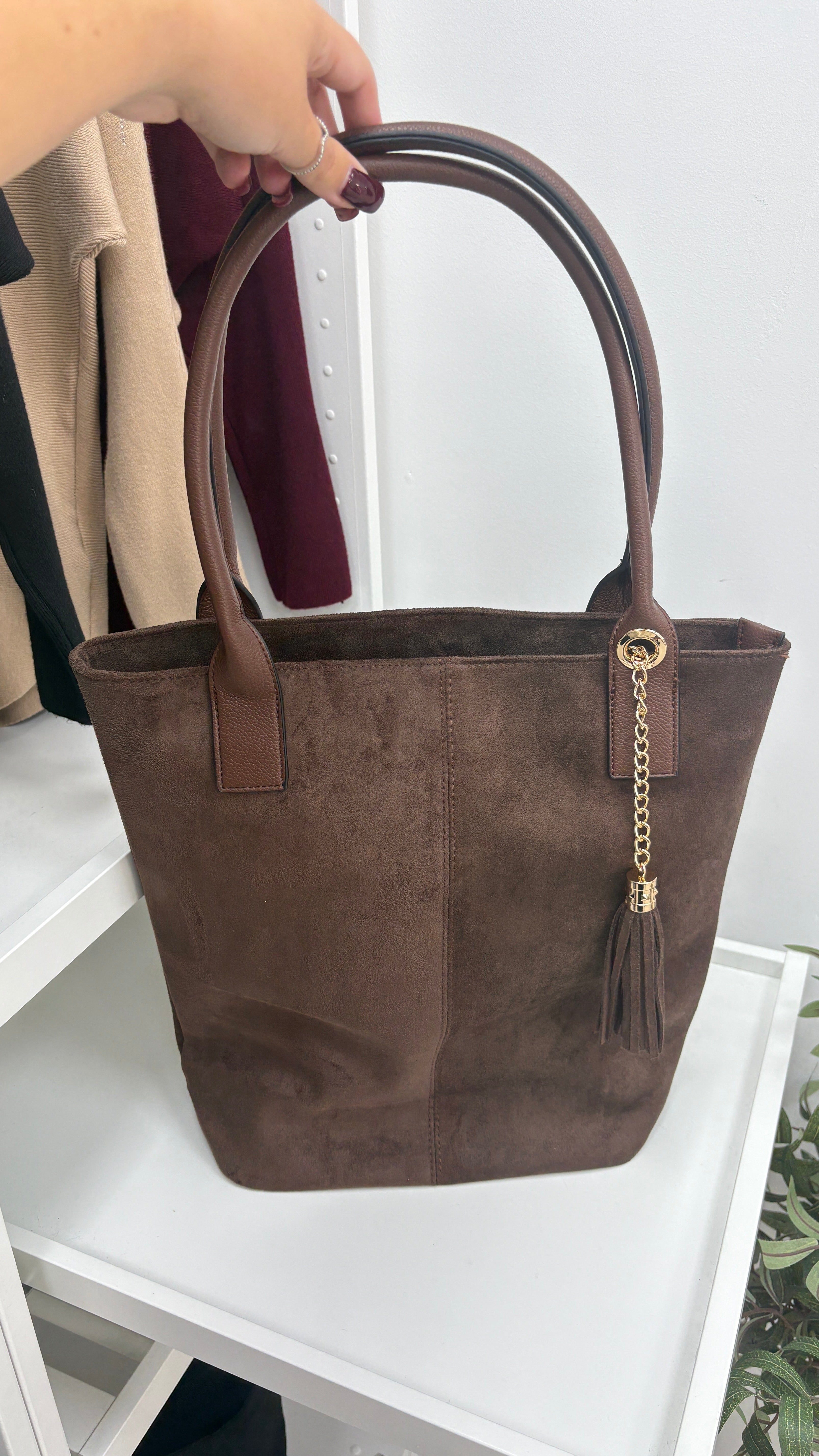 Add a touch of playful charm to your look with the Ottie Faux Suede & Tassel Detail Bag. Crafted with a soft faux suede body and a sleek faux leather strap, this shoulder bag features a fun tassel detail and secure zip closure. Inside, find handy pockets plus a smaller bag perfect for your essentials — keeping everything stylishly organized wherever you go!