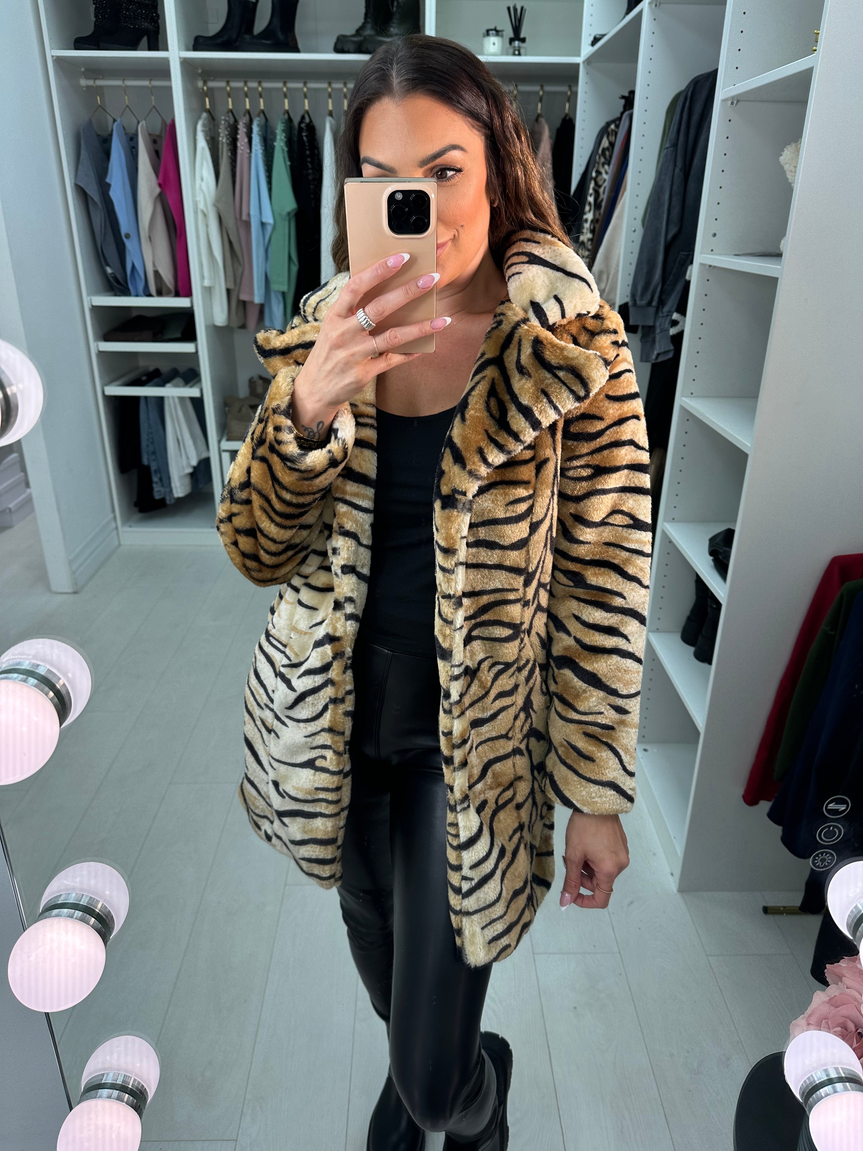 Paxten Tiger Soft Faux Fur Coat