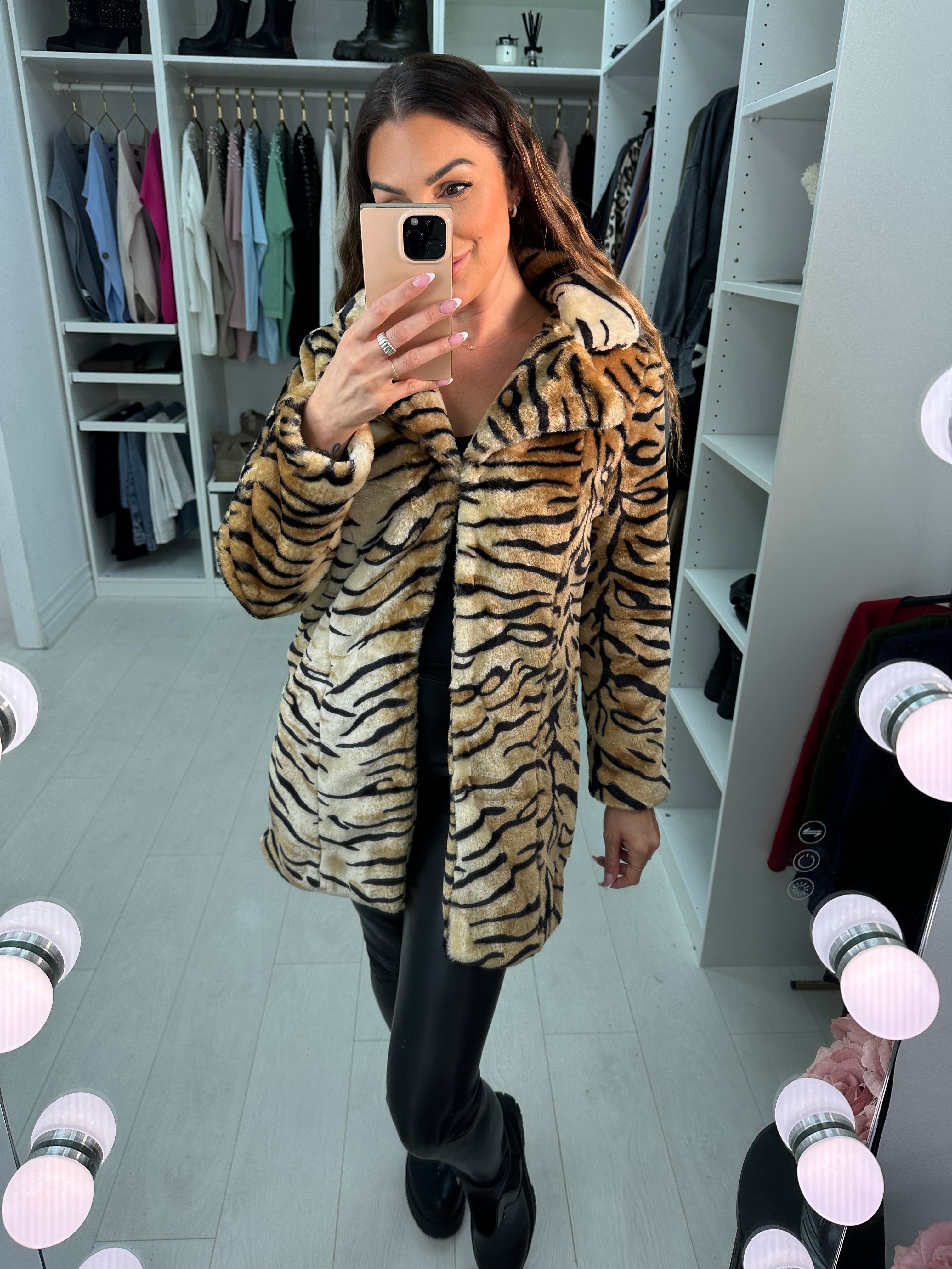 Paxten Tiger Soft Faux Fur Coat