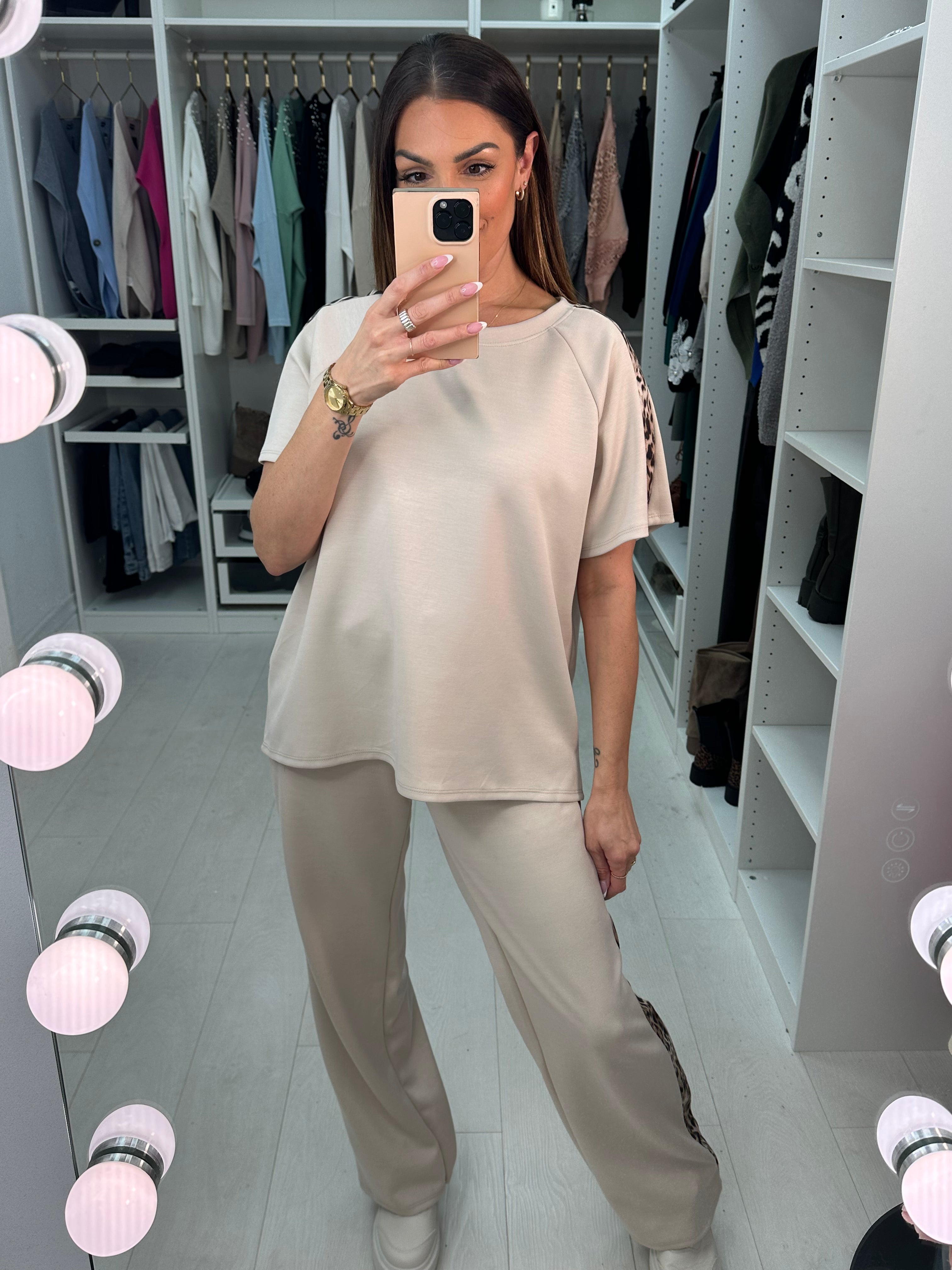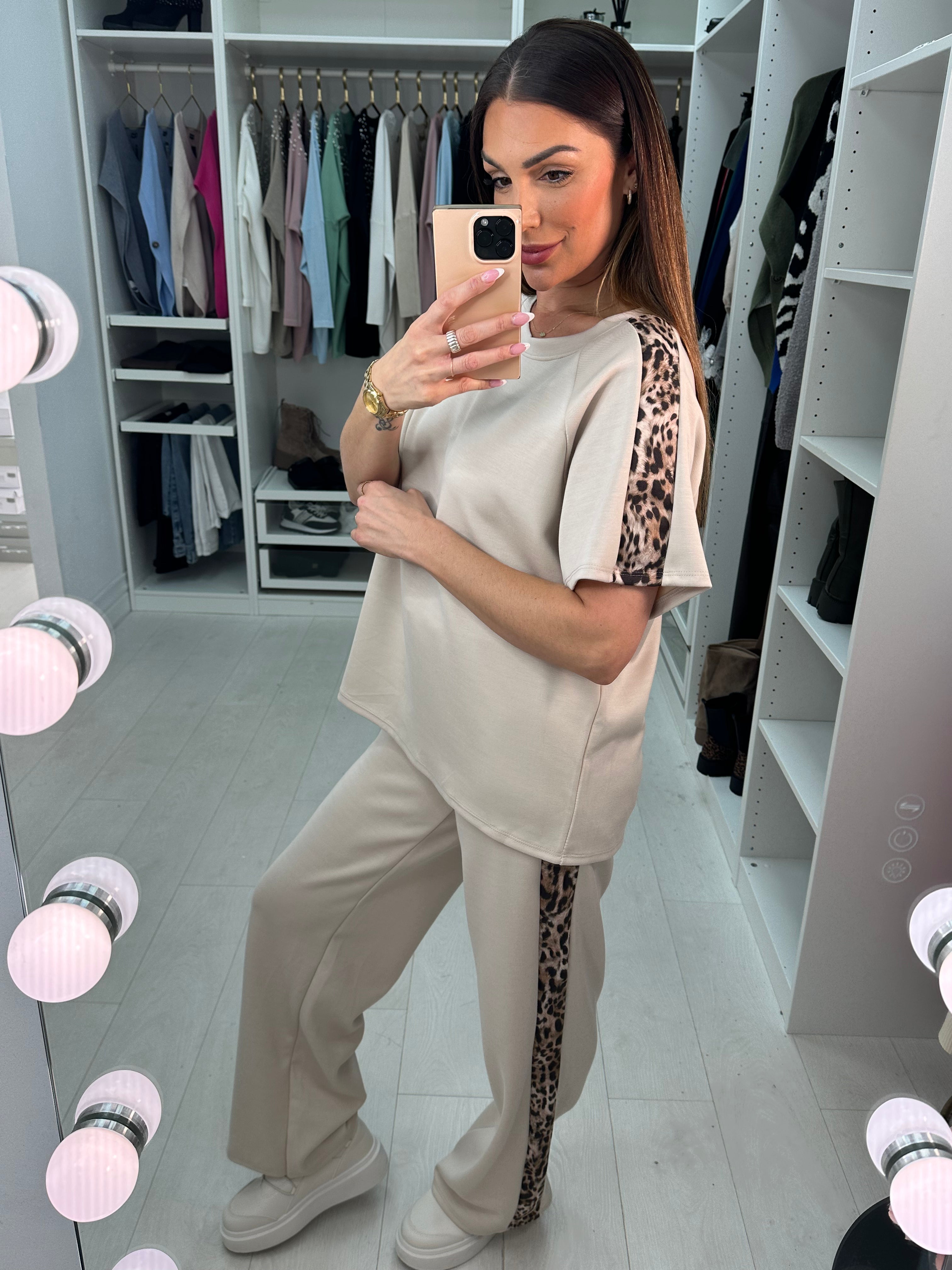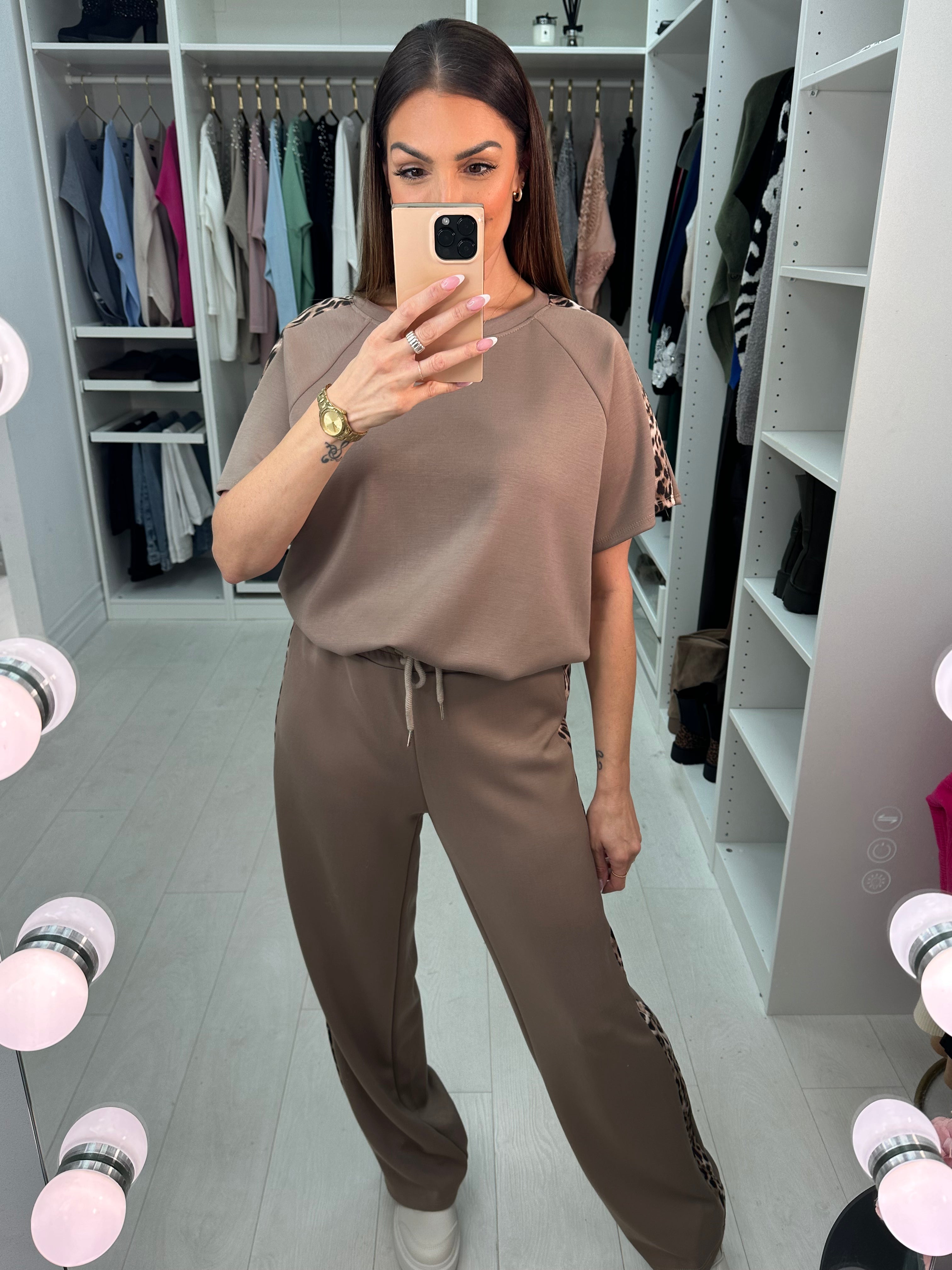 Adalina Leopard Detailed Short Sleeve Loungewear Set