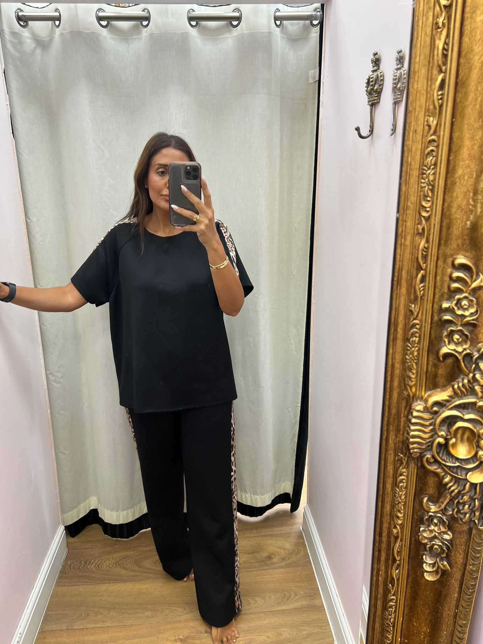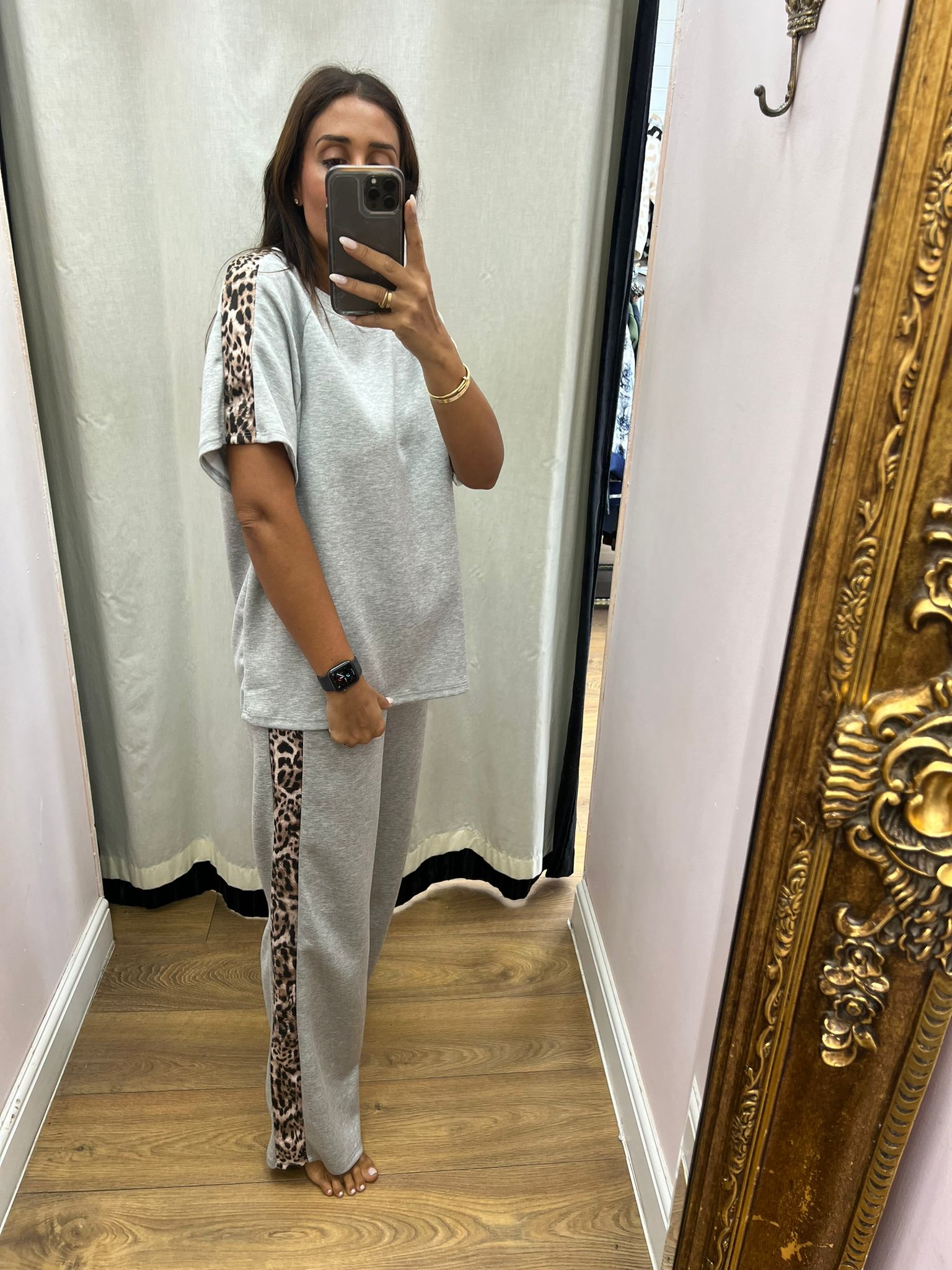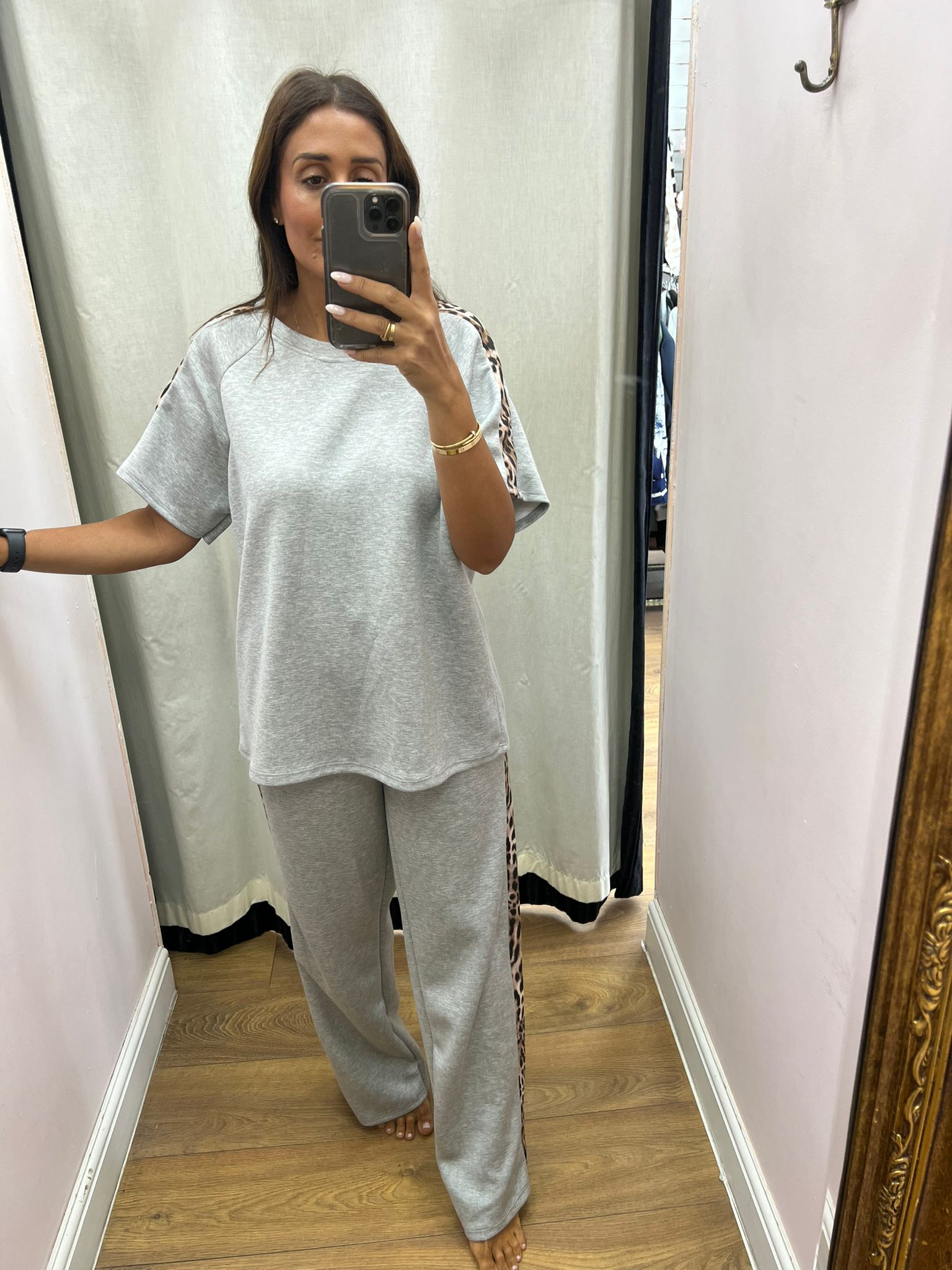 Adalina Leopard Detailed Short Sleeve Loungewear Set
