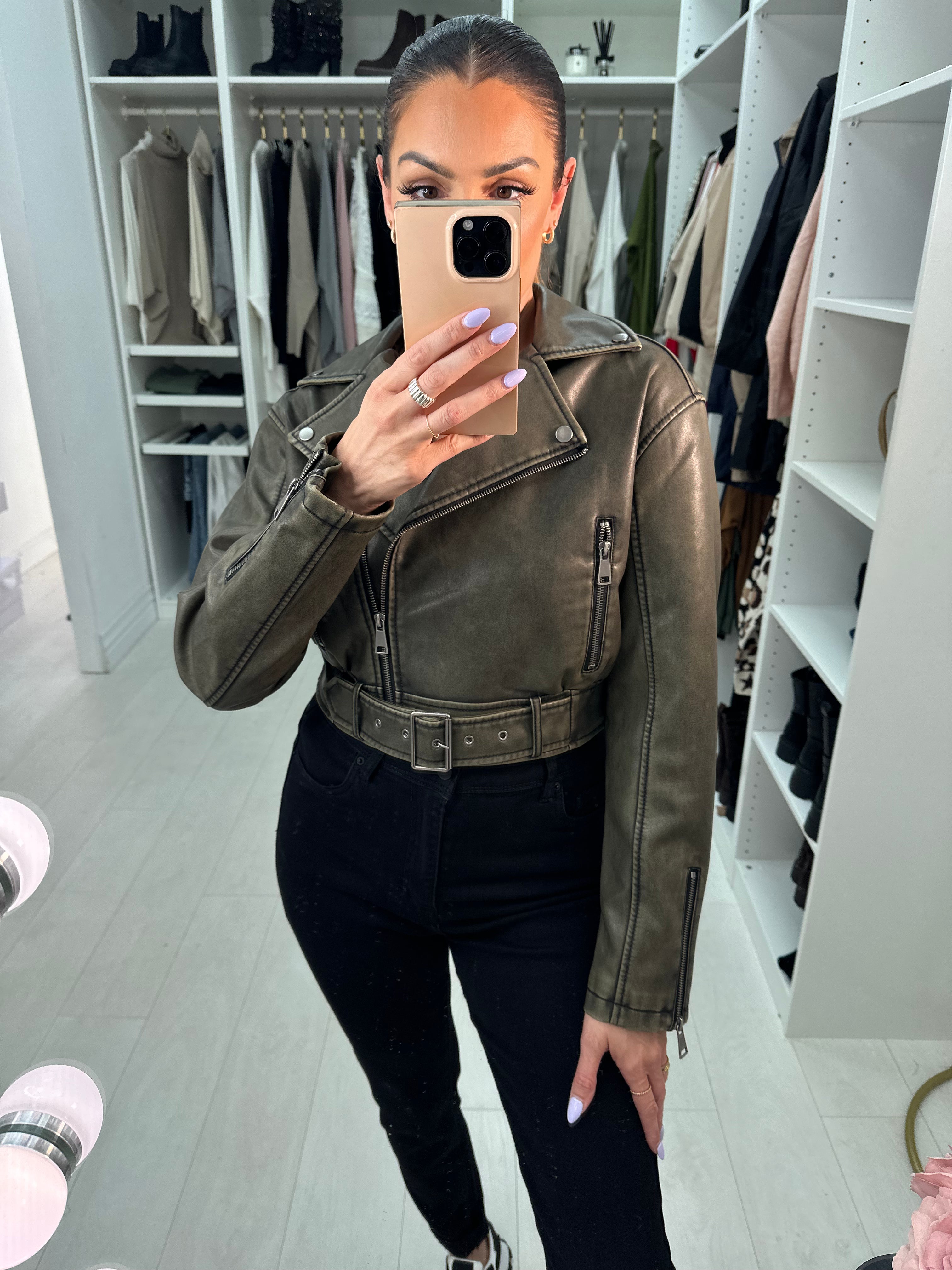 Sunlee Cropped Leather Look Biker Jacket