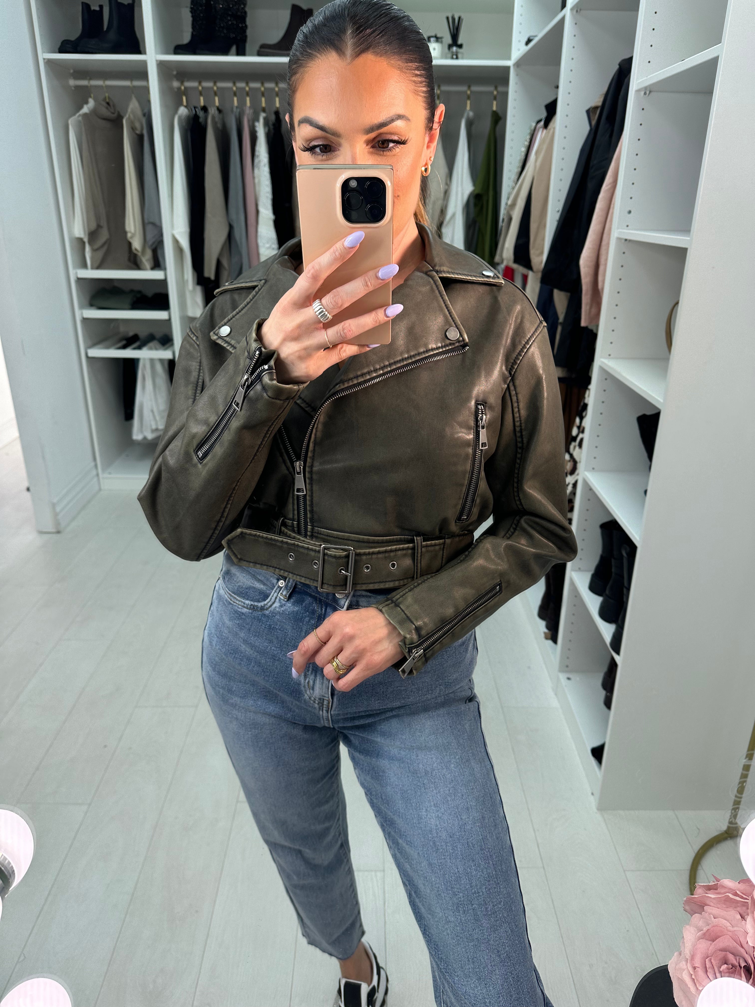 Sunlee Cropped Leather Look Biker Jacket