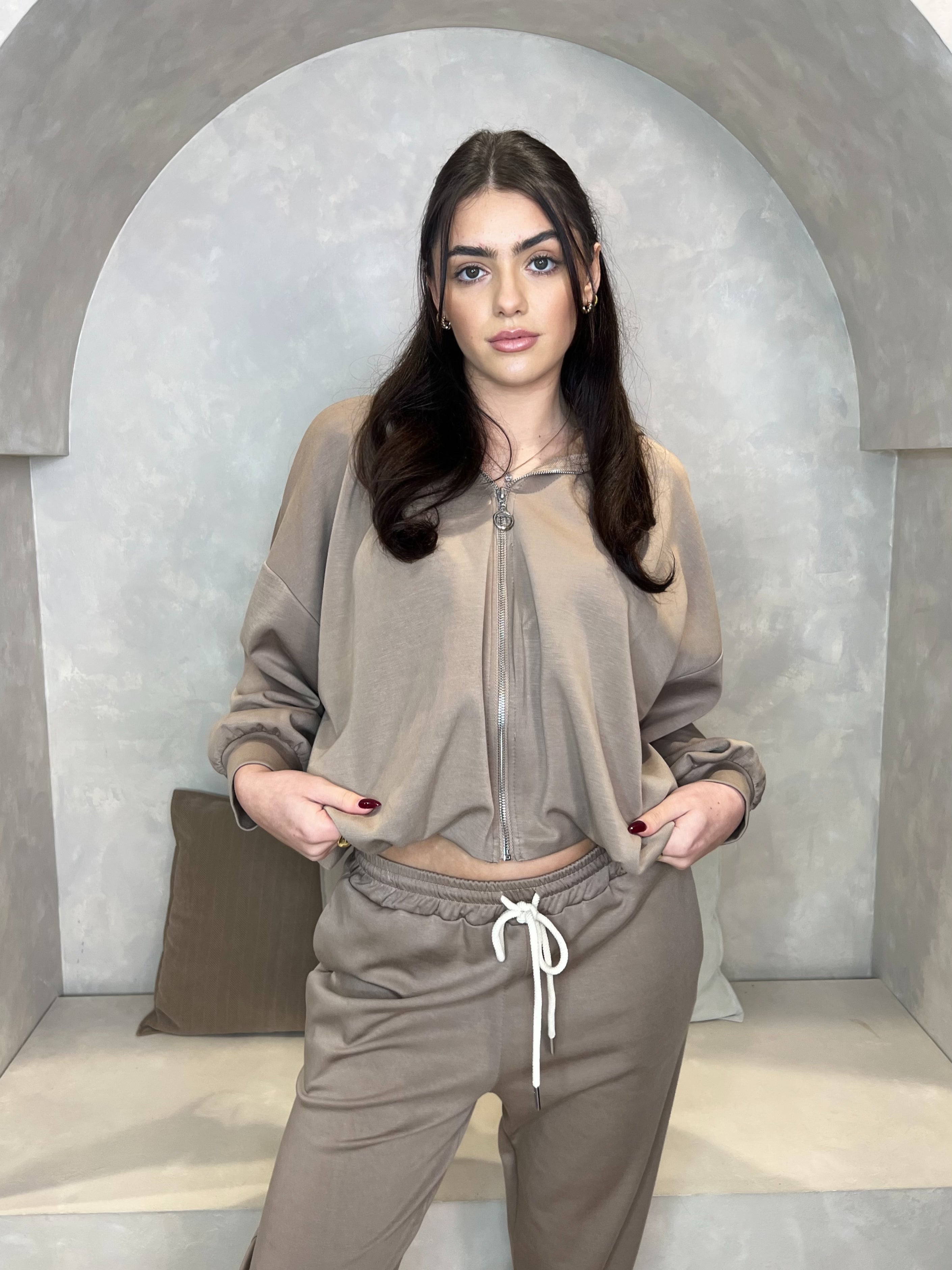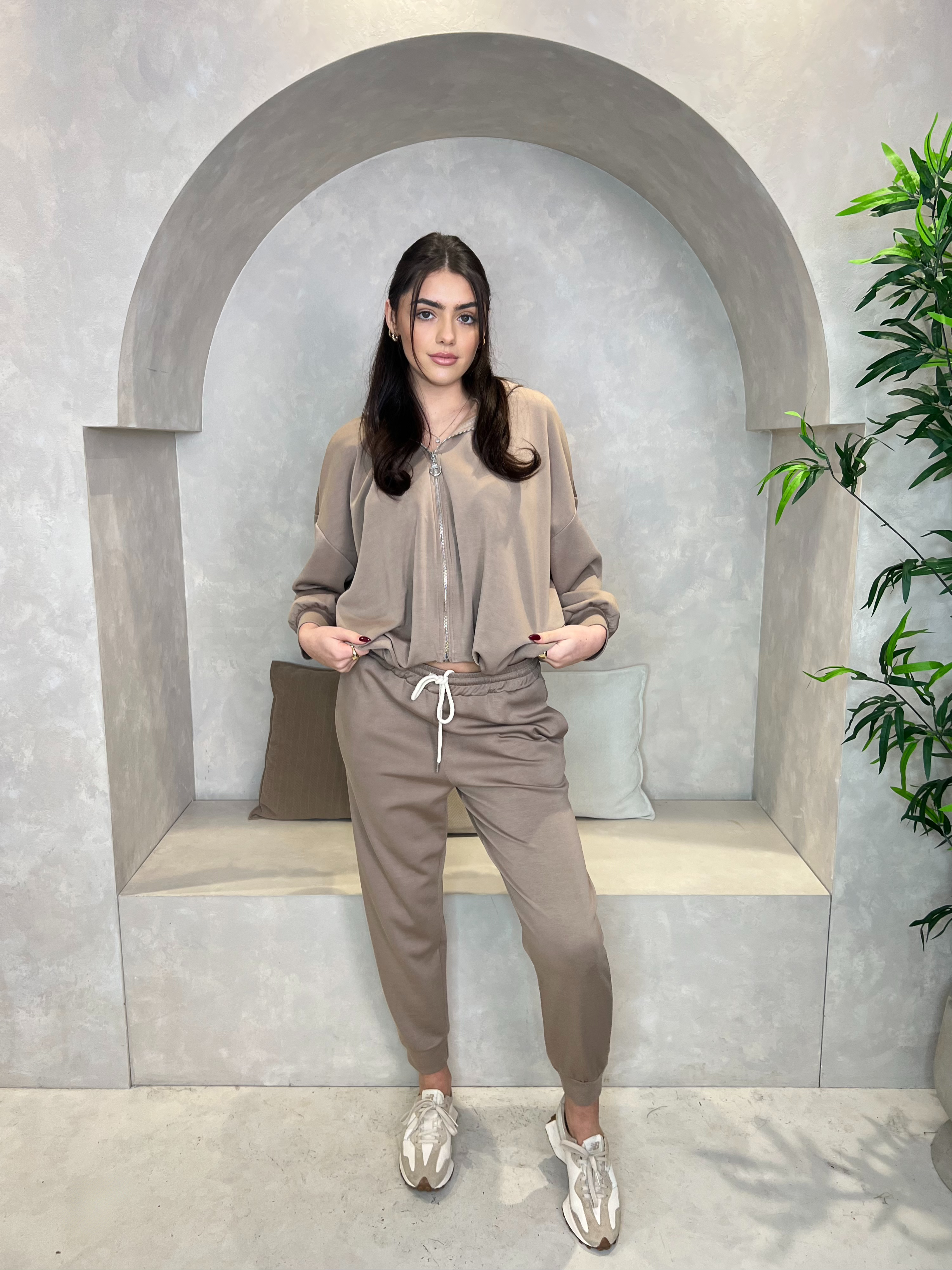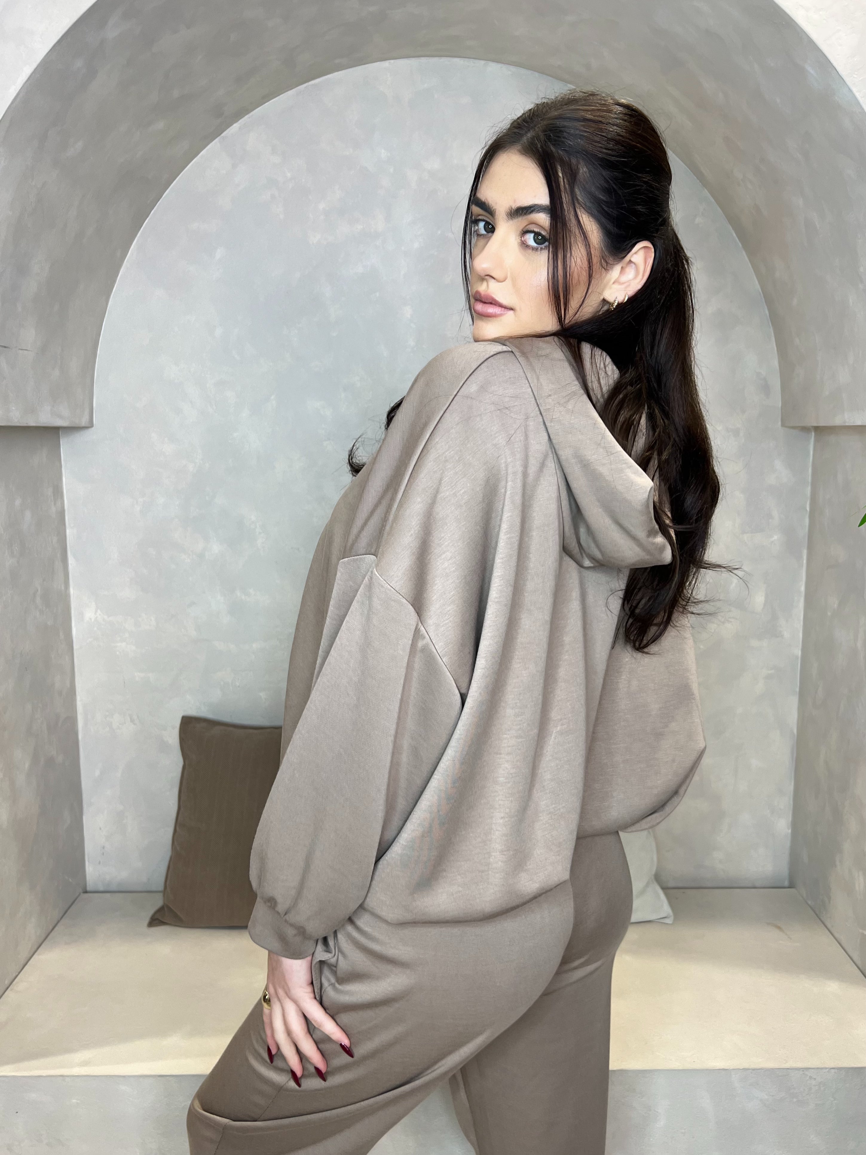 Taupe Balloon Detail Waist Hooded Jacket