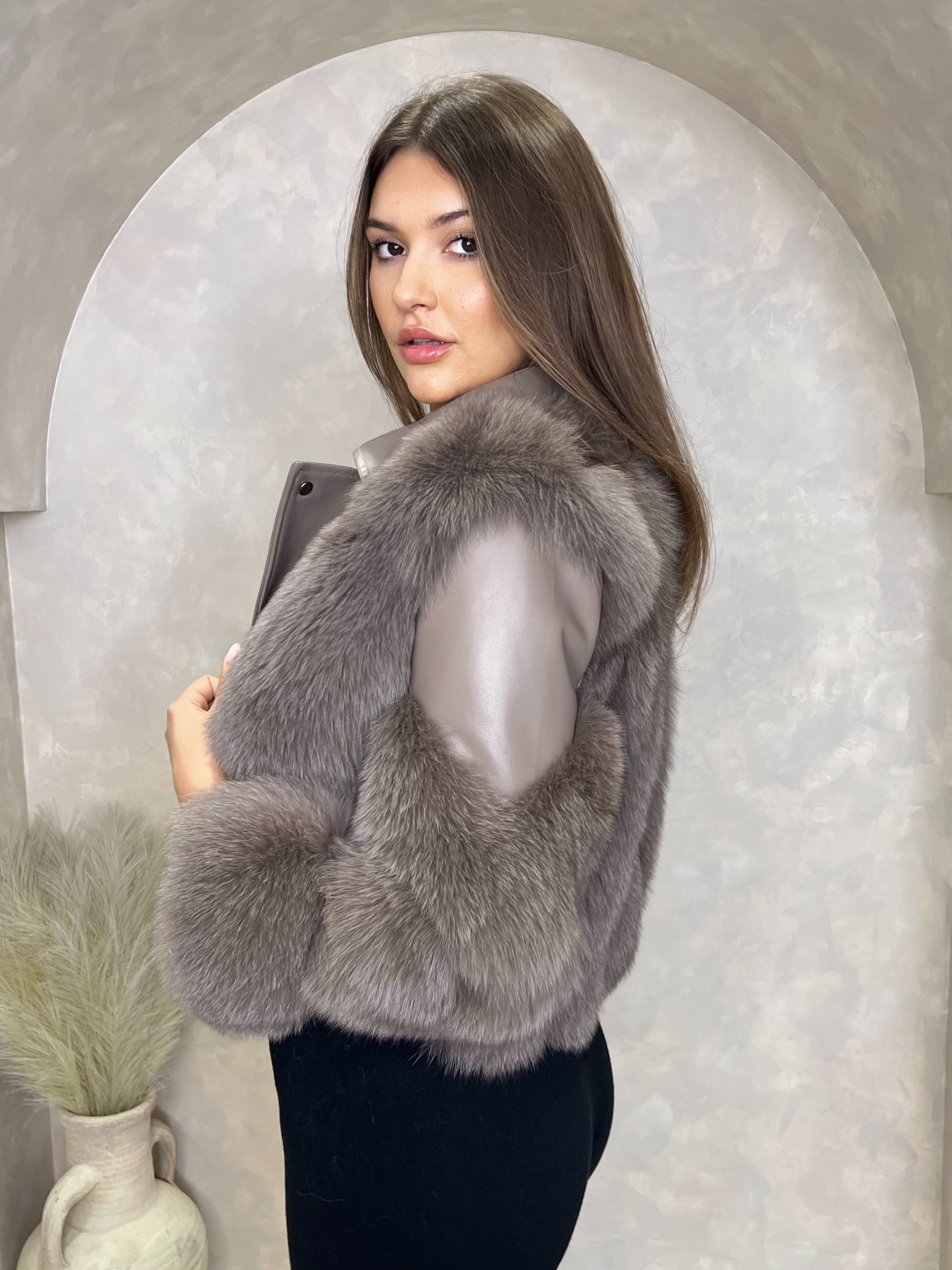 Taupe Luxury Fur Biker Style Jacket