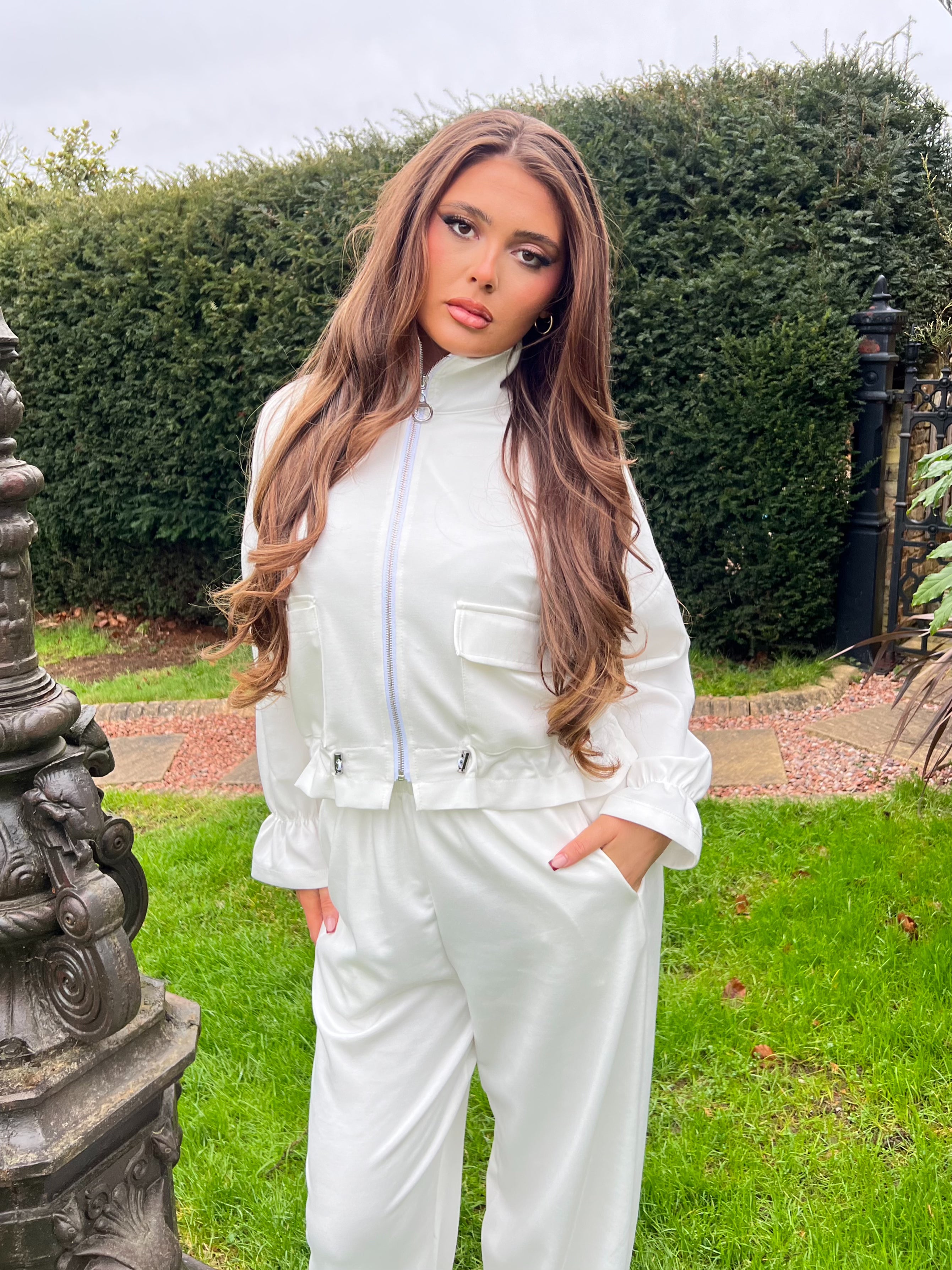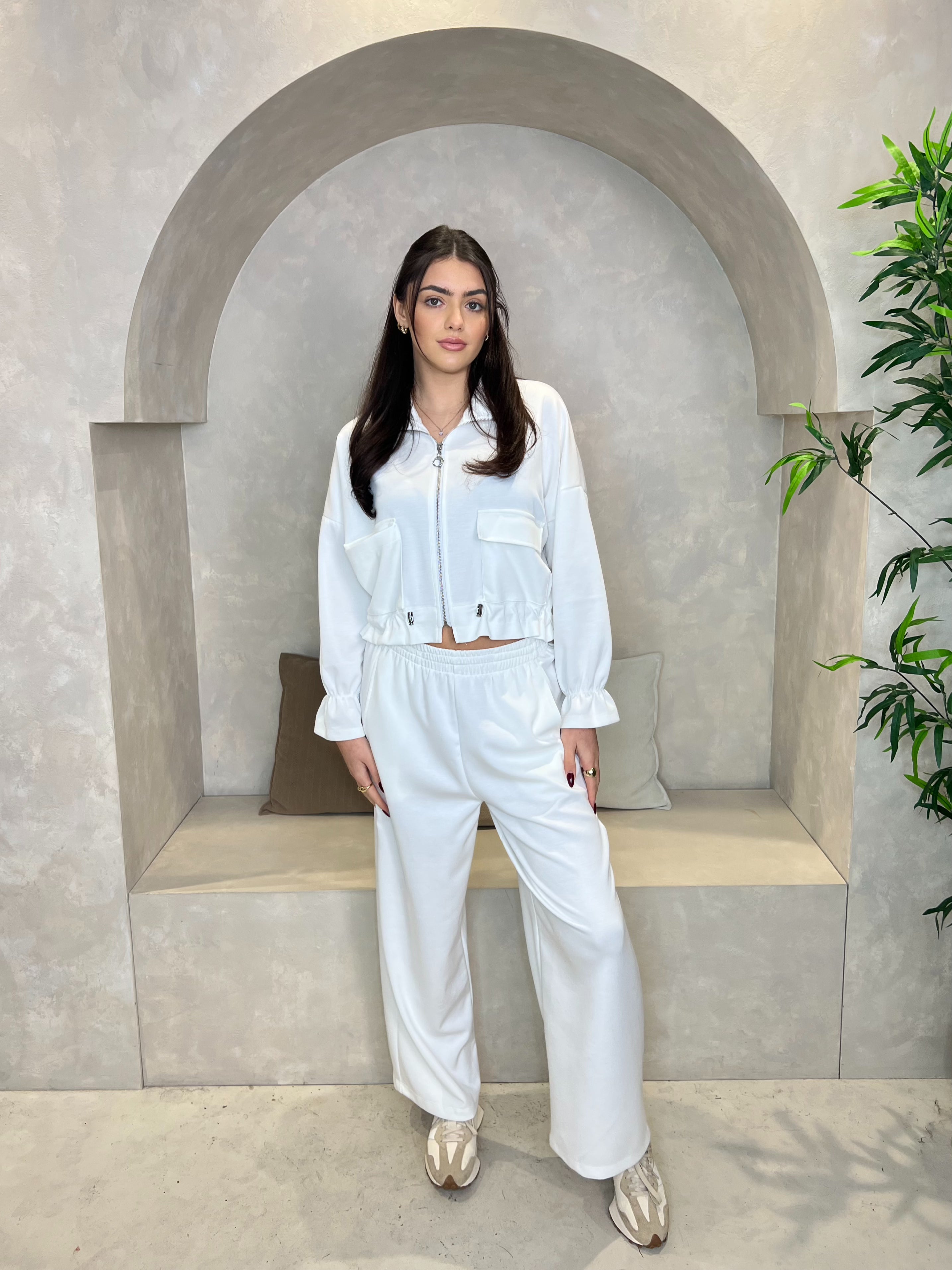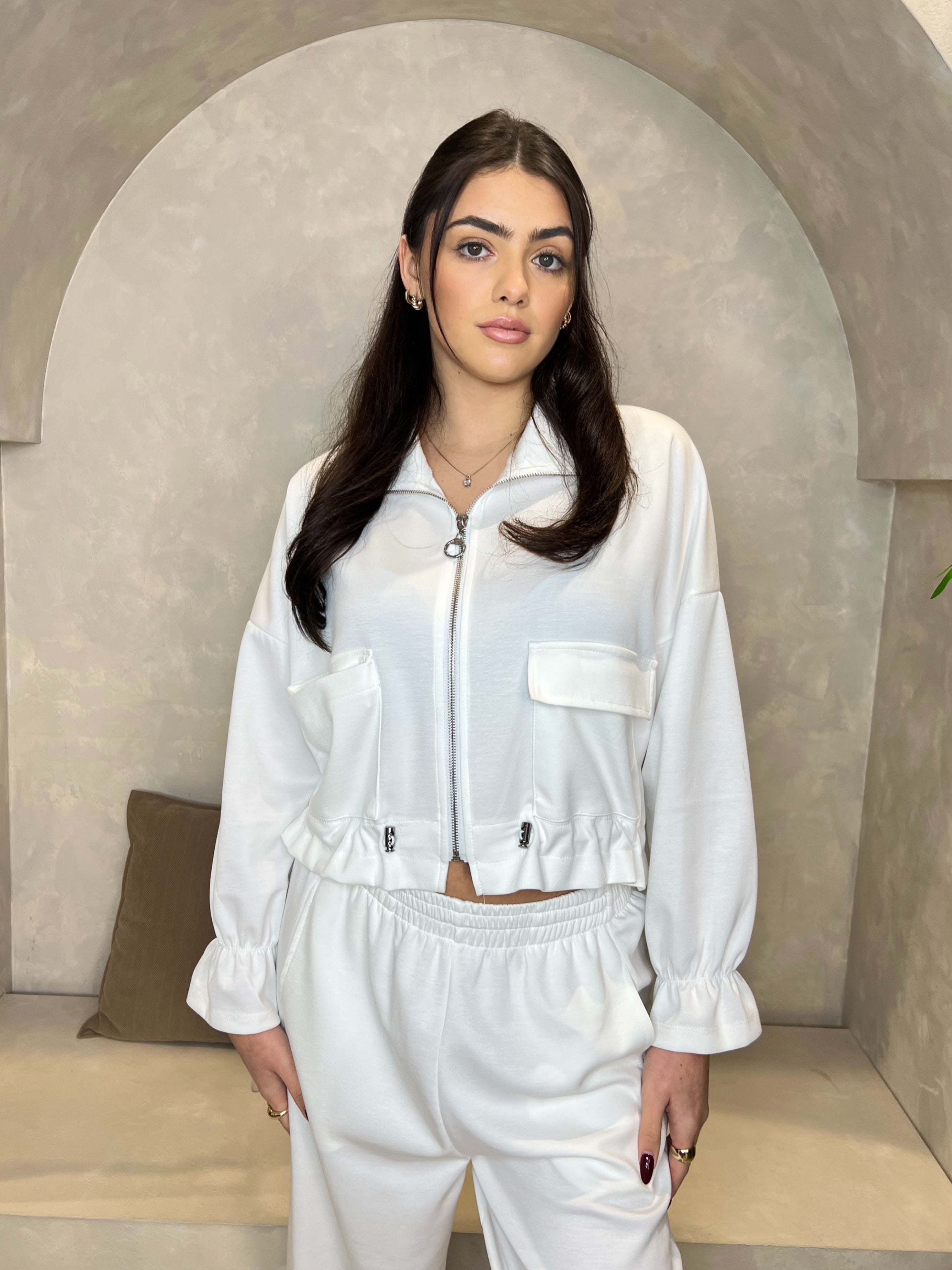 This jacket features a zip fastening and a collared design, providing both style and practicality. The frill hem adds a touch of femininity, while the two pockets offer convenience. The elastic frill cuff ensures a comfortable fit. Elevate any outfit with this expertly designed jacket.