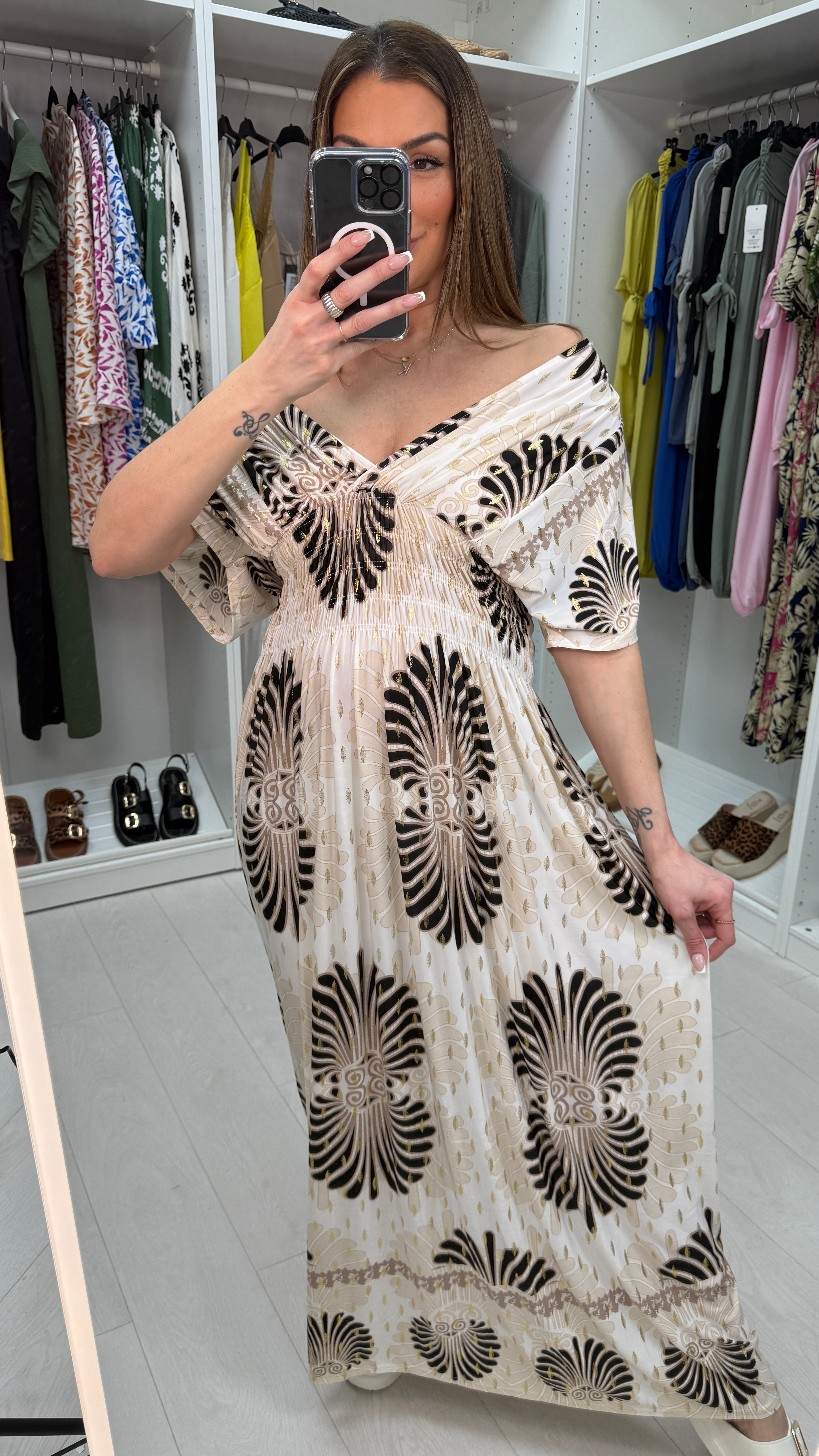 Yasmina Mosaic Print V Neck Magic Maxi Dress