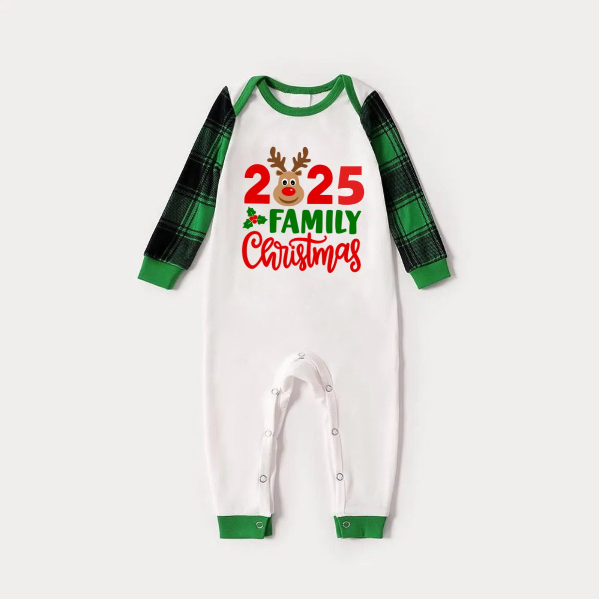 • "2026 Family Christmas" Moose Letter Prints Green Rotator Cuff Top With Green & Black Plaid Family Matching Pajamas
