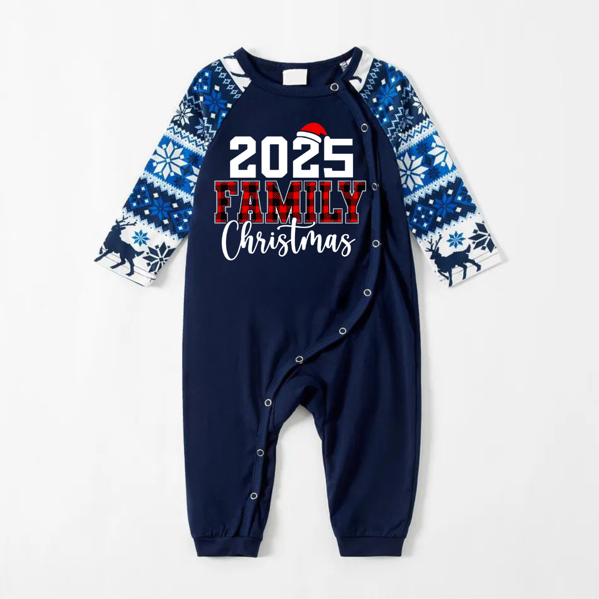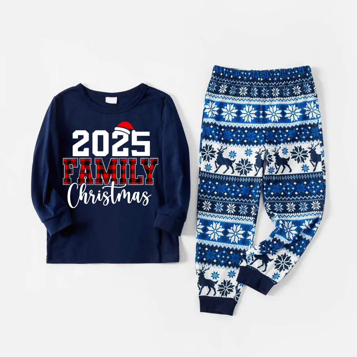 2026 Family Christmas Text Print Blue Family Christmas Matching Pajamas