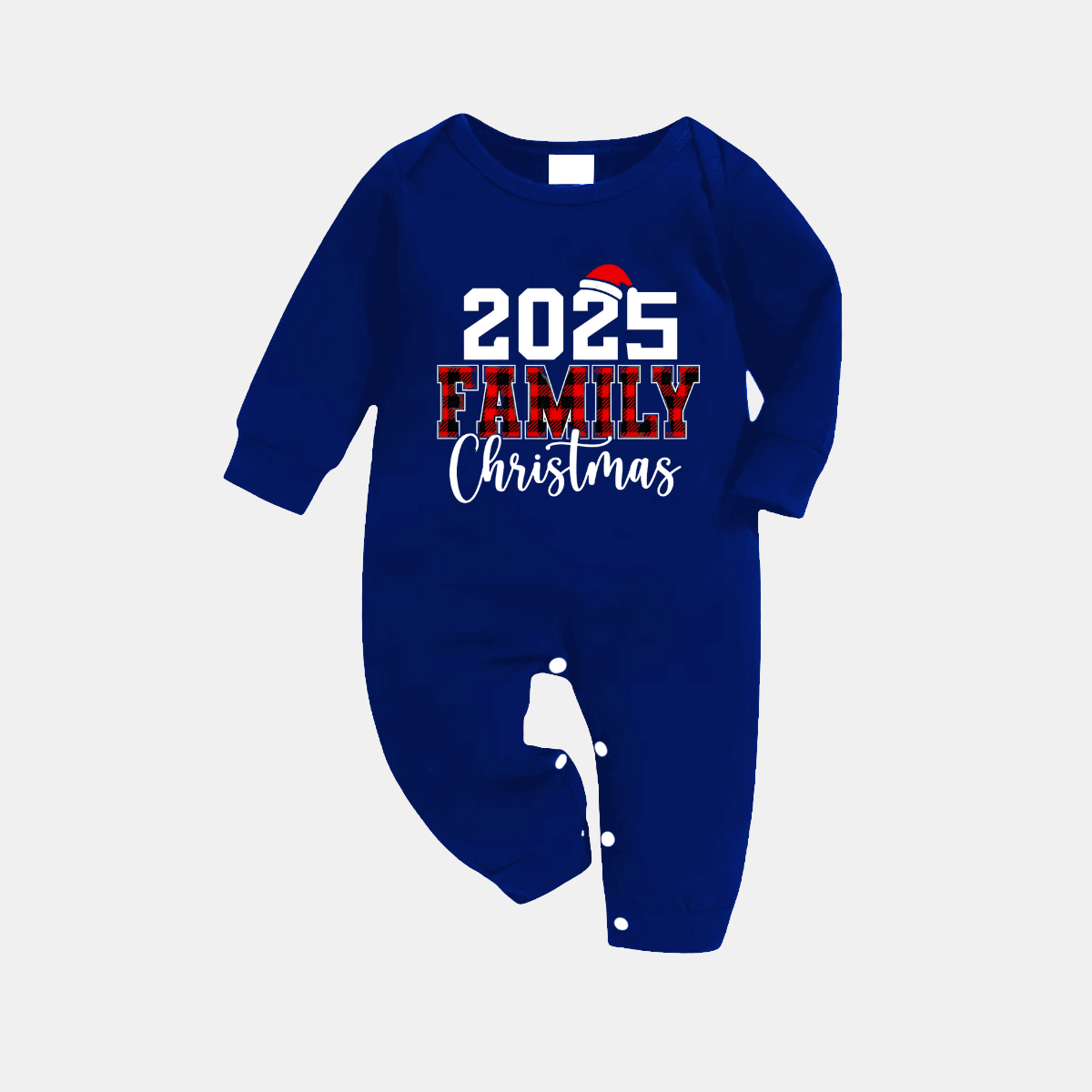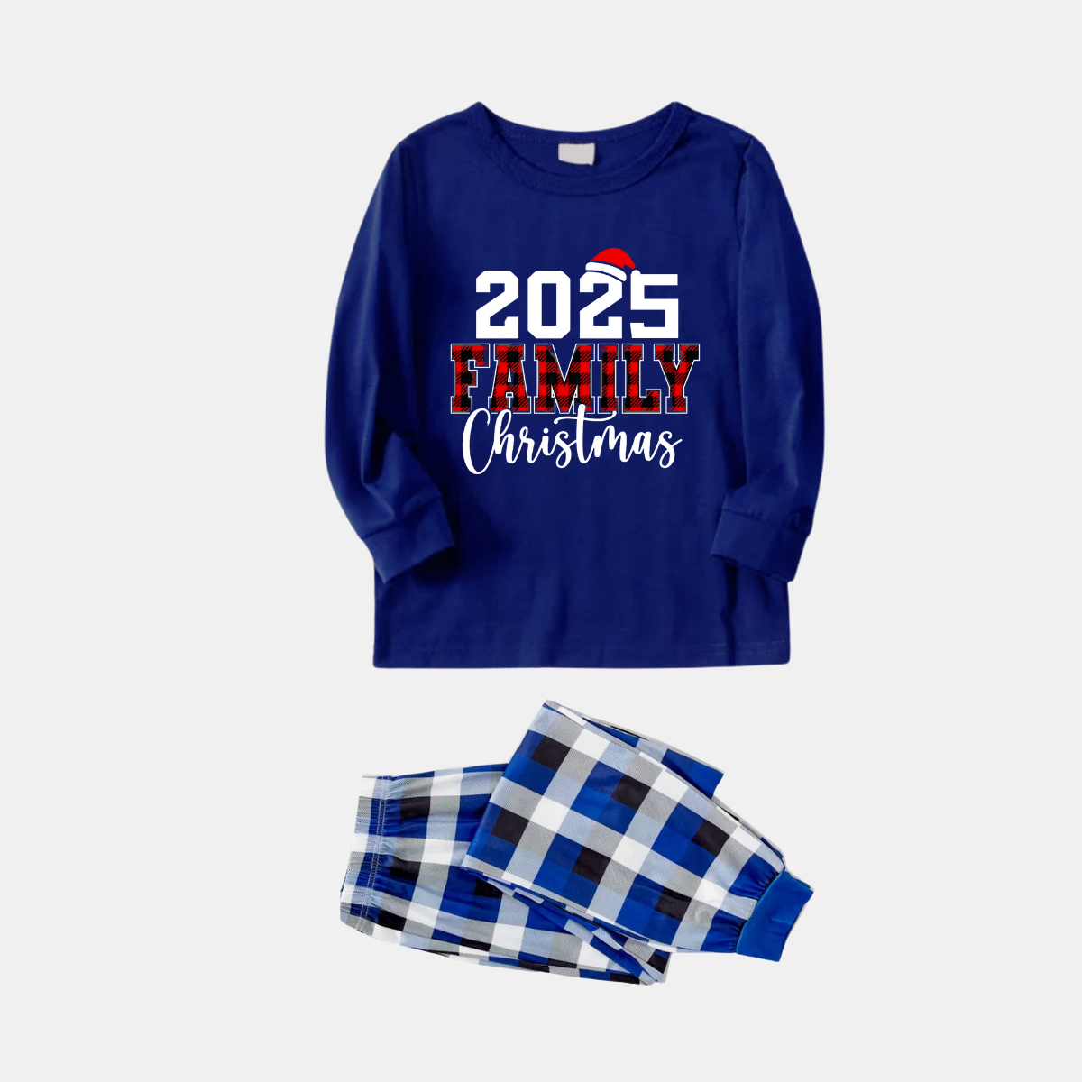 • "2026 Family Christmas" Text Printed Blue and White Plaid Family Matching Pajamas