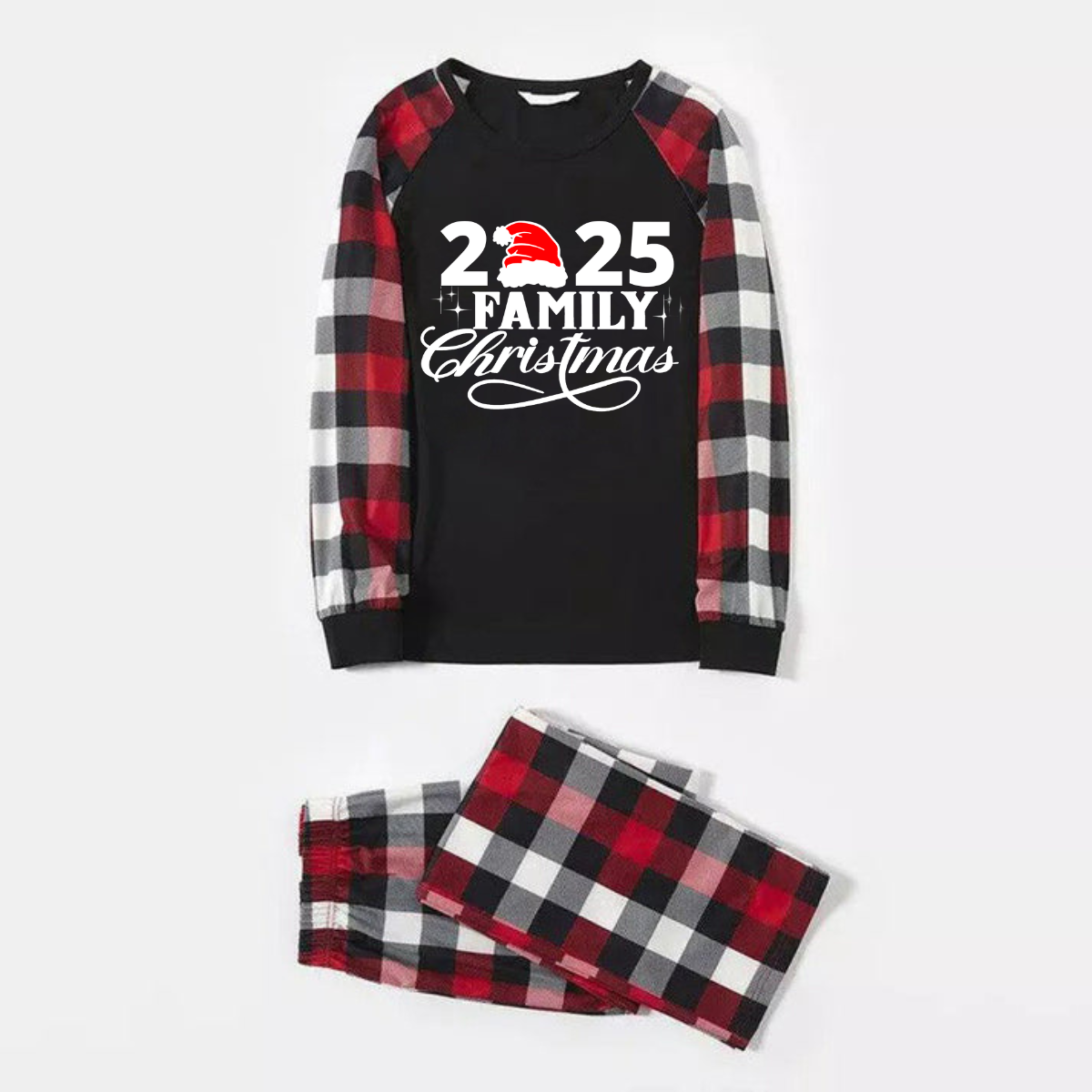 • "2026 Family Christmas" Letter Print Red & Black & Grey & White Plaid Family Matching Pajamas