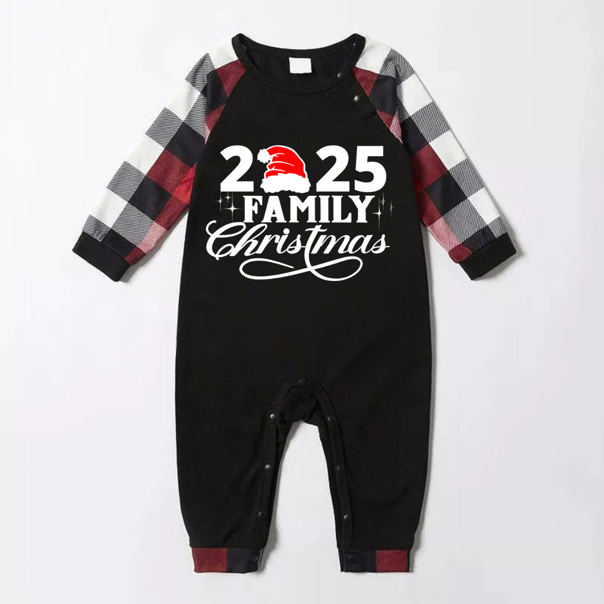 "2026 Family Christmas" Letter Print Red & Black & Grey & White Plaid Family Matching Pajamas