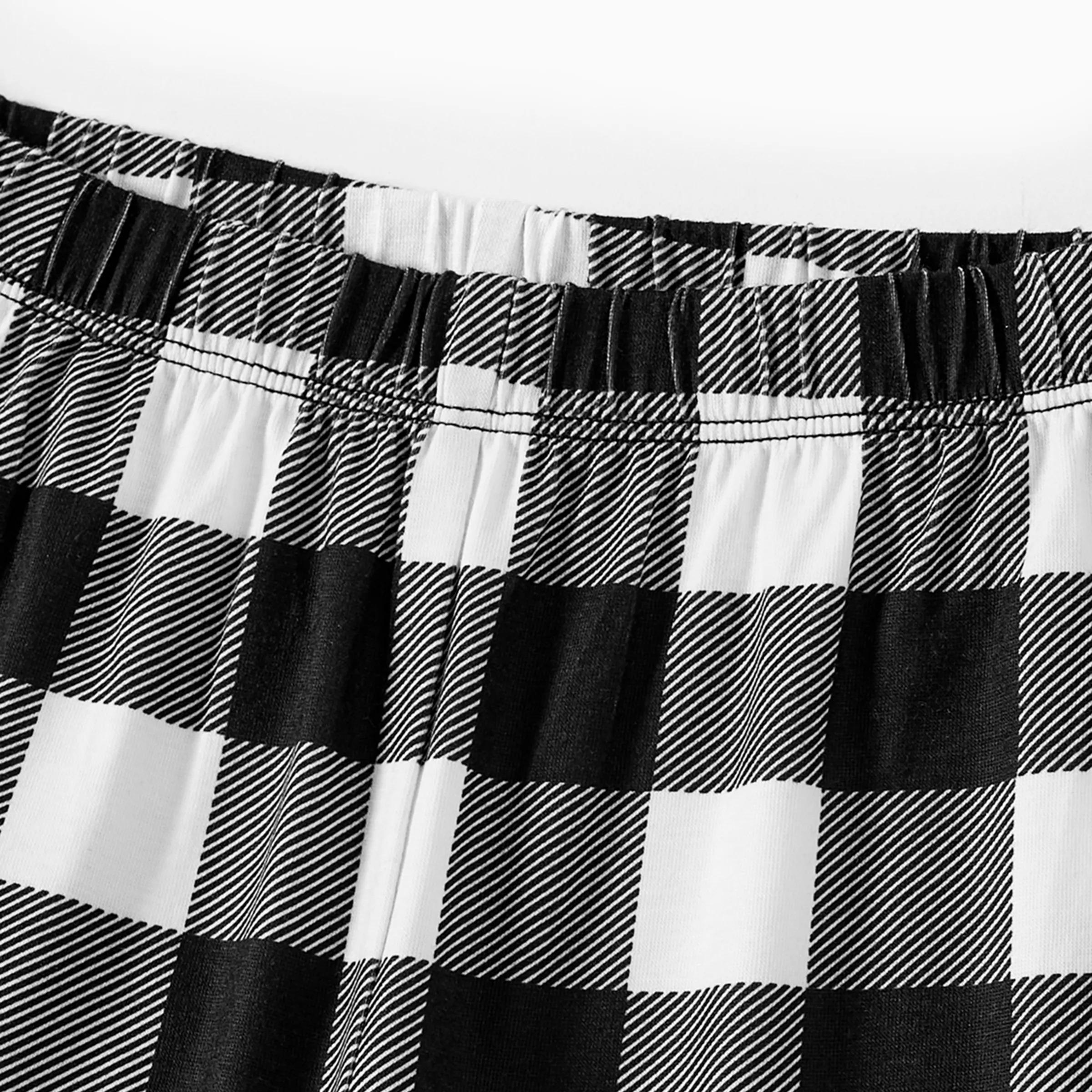 • "2026 Family Christmas" Text and Christmas Pattern Black and White Plaid Family Matching Pajamas