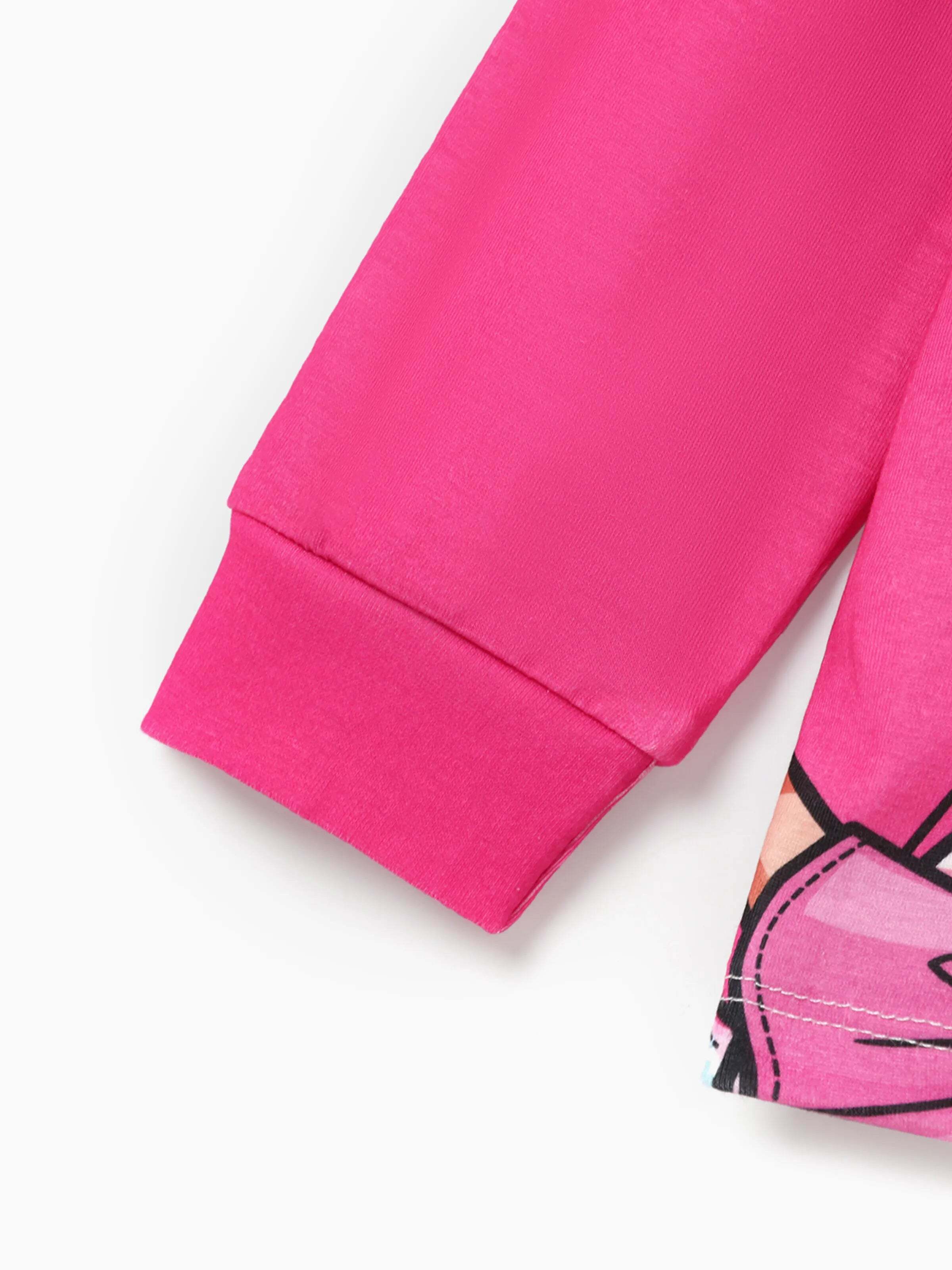 This Barbie-themed pajama set is perfect for the whole family, featuring a cute graphic of Barbie wearing a festive Santa hat. The pink top and reindeer-patterned pants bring a cheerful holiday vibe, making it ideal for family photos and cozy nights. Available for adults, kids, and babies.