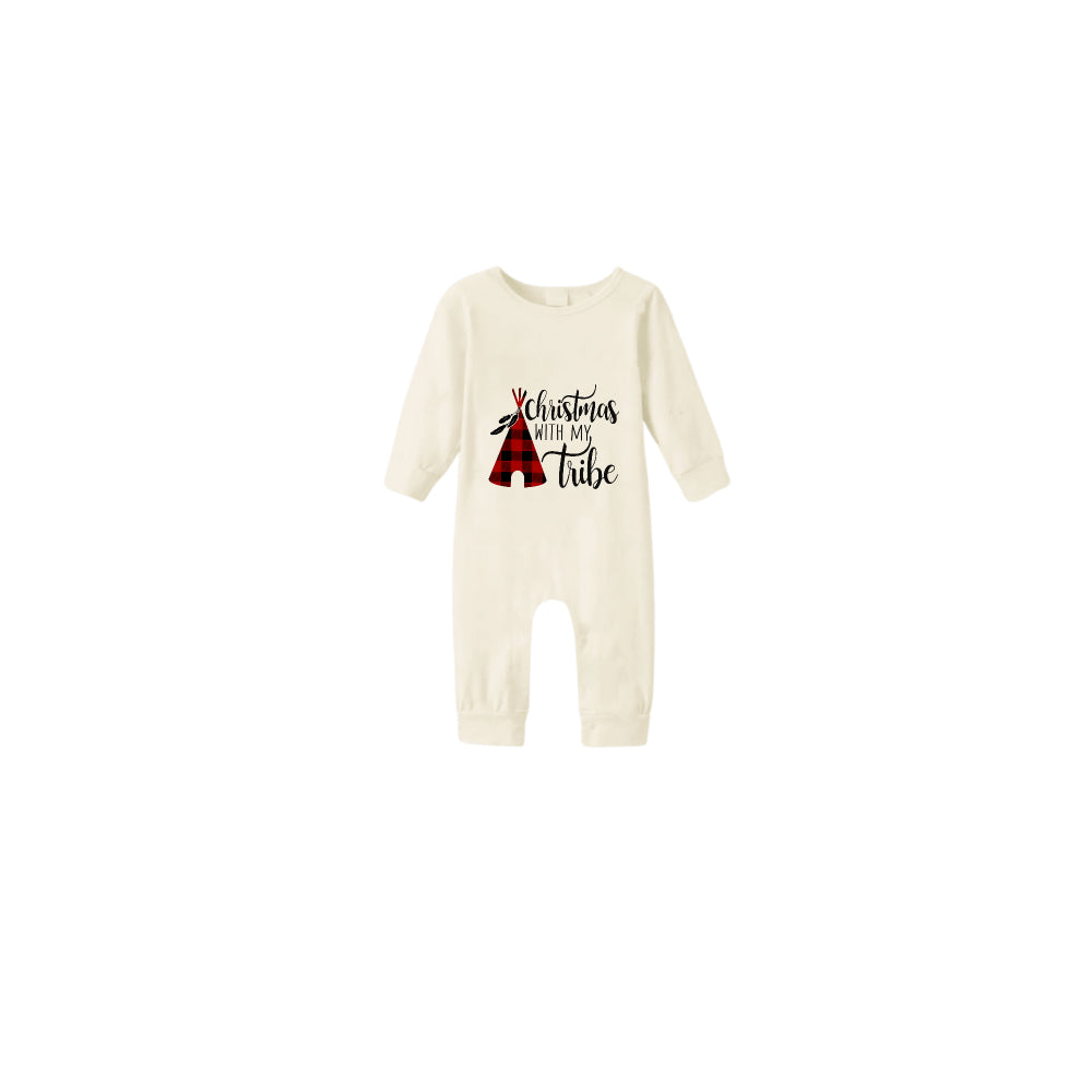 • Beige Christmas Pattern Print Christmas Pajamas Set With Christmas Holiday Text Print