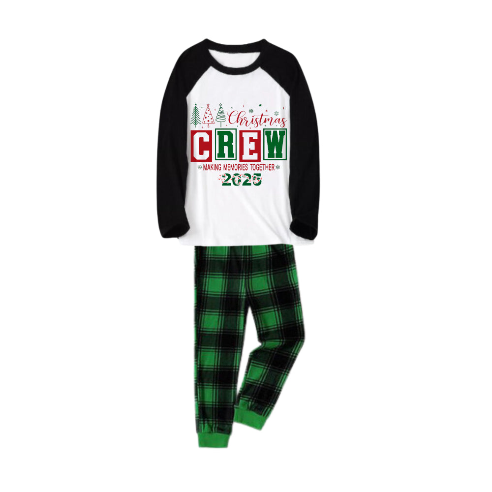 • Black Raglan Top Green Plaid Christmas Pajamas Set With Christmas Crew Holiday Text