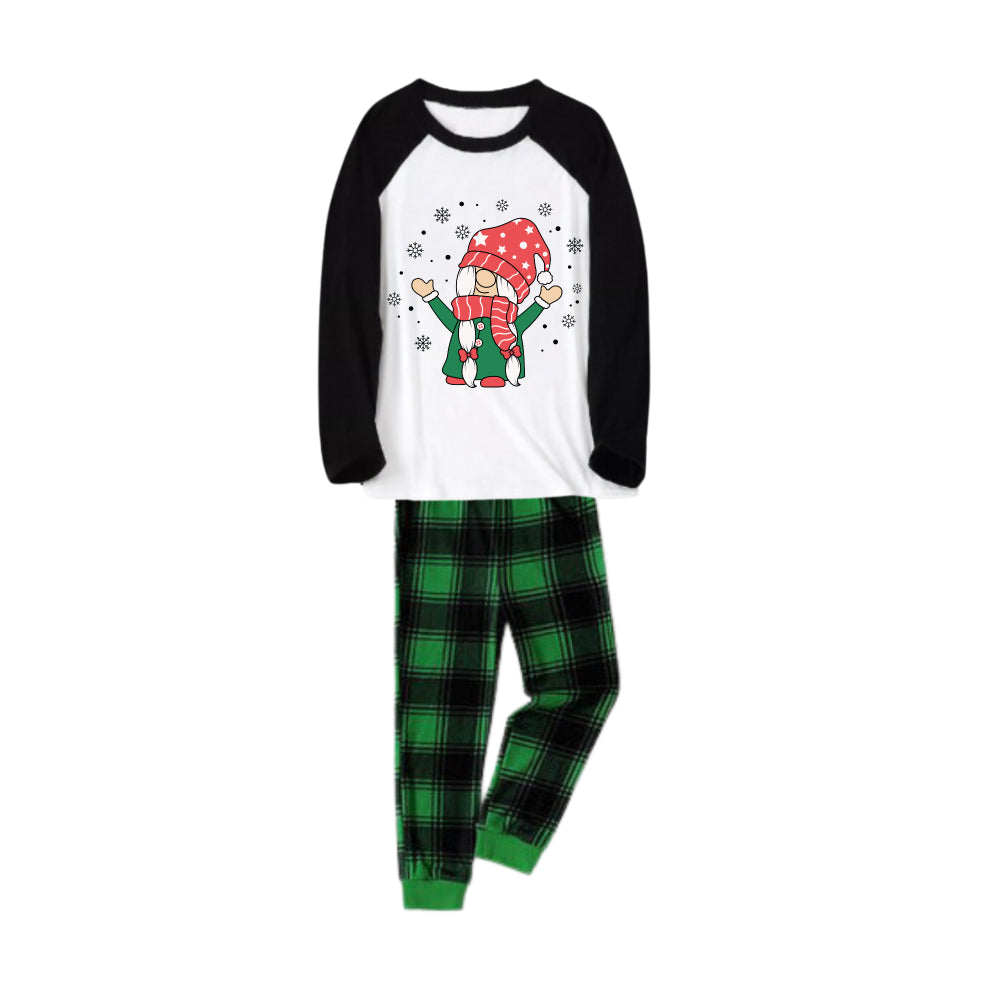 Black Raglan Top Green Plaid Christmas Pajamas Set With Christmas Gnome Print