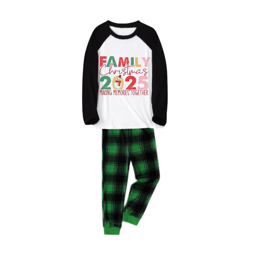 • Black Raglan Top Green Plaid Christmas Pajamas Set With "Family Christmas 2026" Holiday Text Print