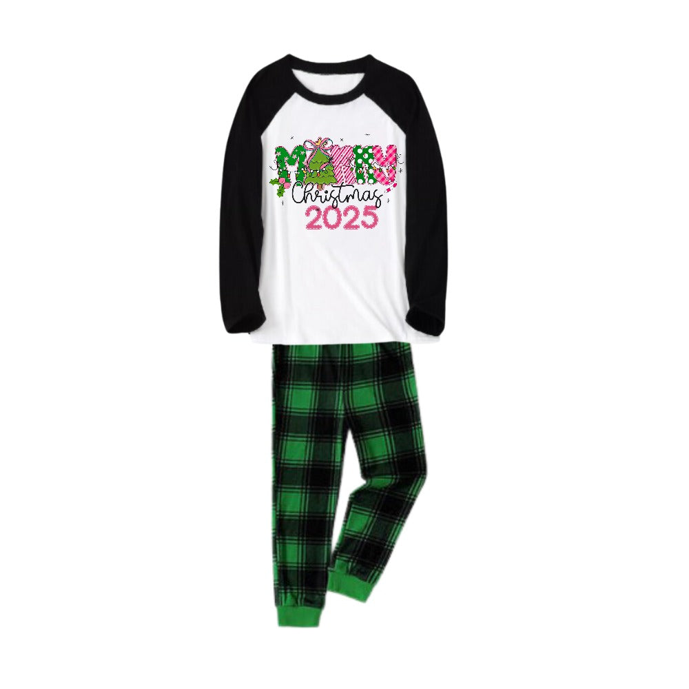 • Black Raglan Top Green Plaid Christmas Pajamas Set With Merry Christmas 2026 Holiday Text
