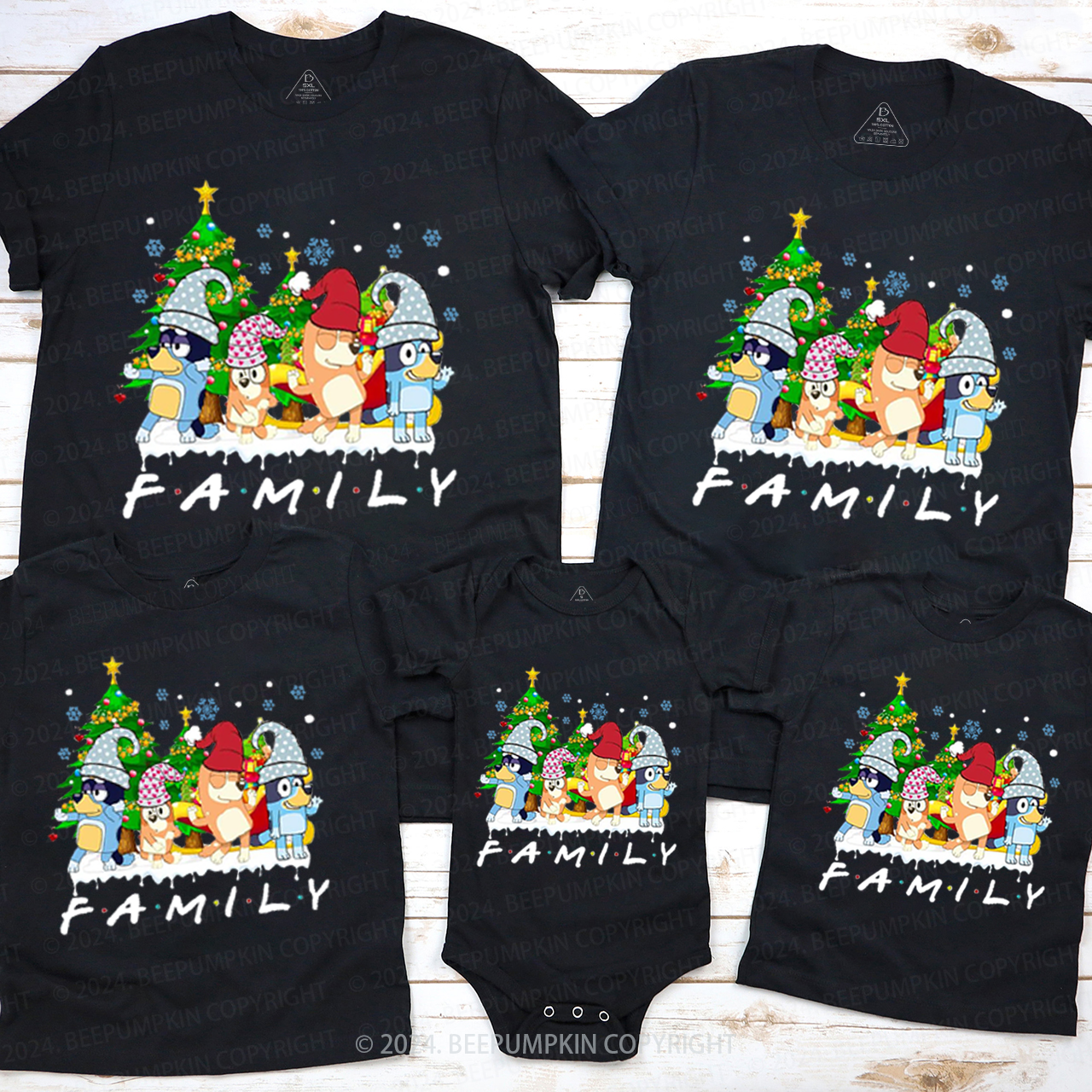 Cartoon Dog Christmas Matching T-Shirts Beepumpkin
