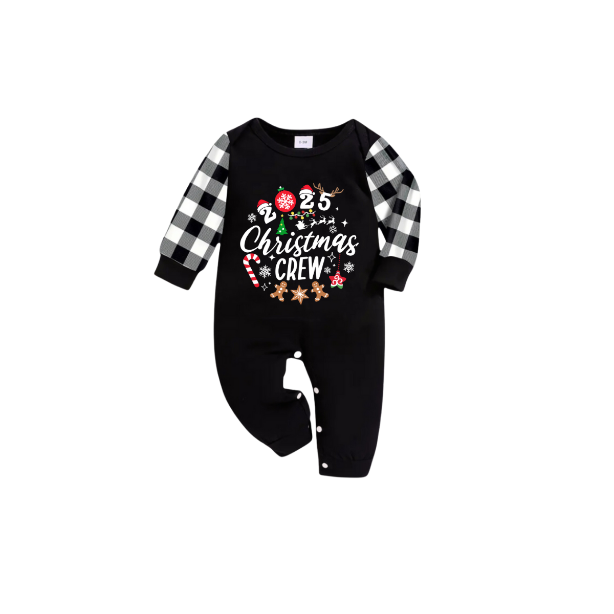 • Christmas Crew 2026 Family Pajamas Set - Black Top Black and White Plaid Pants Candy Cane and Cookies Graphic