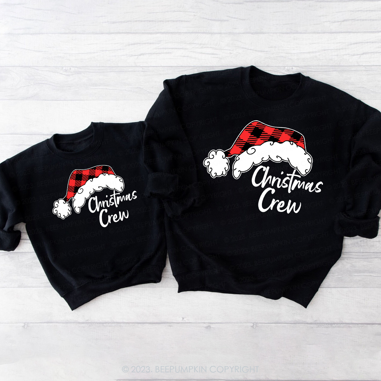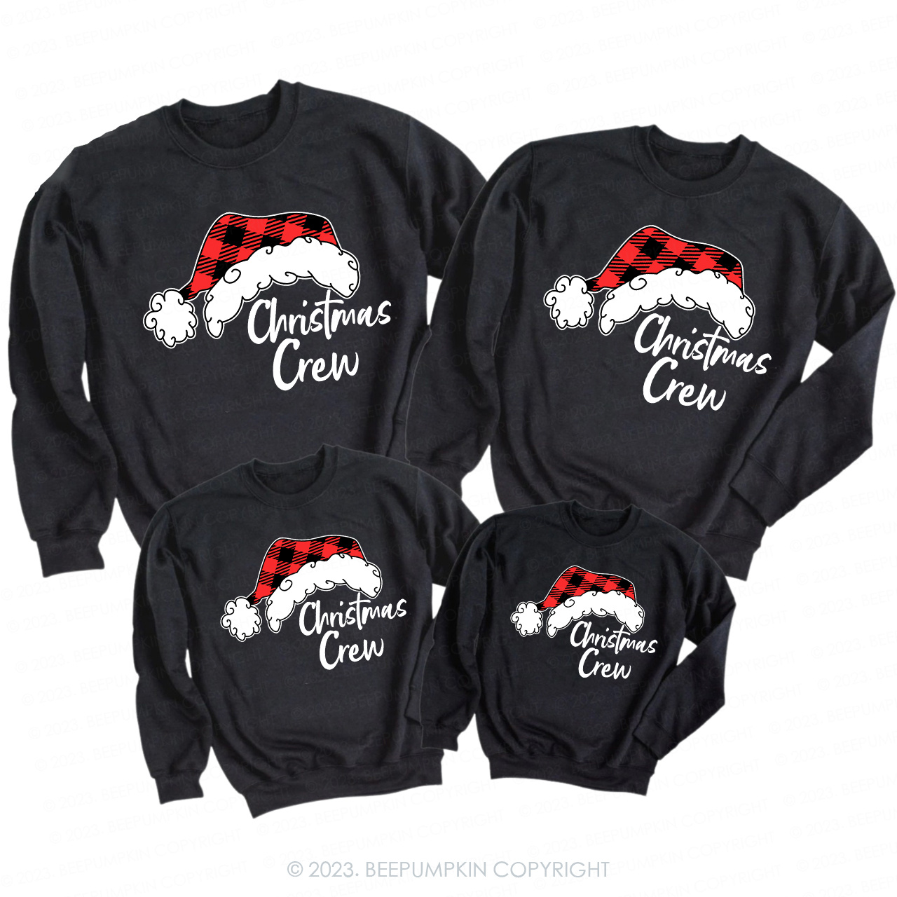 Christmas Crew Red Plaid Santa Hat Family Sweatshirts