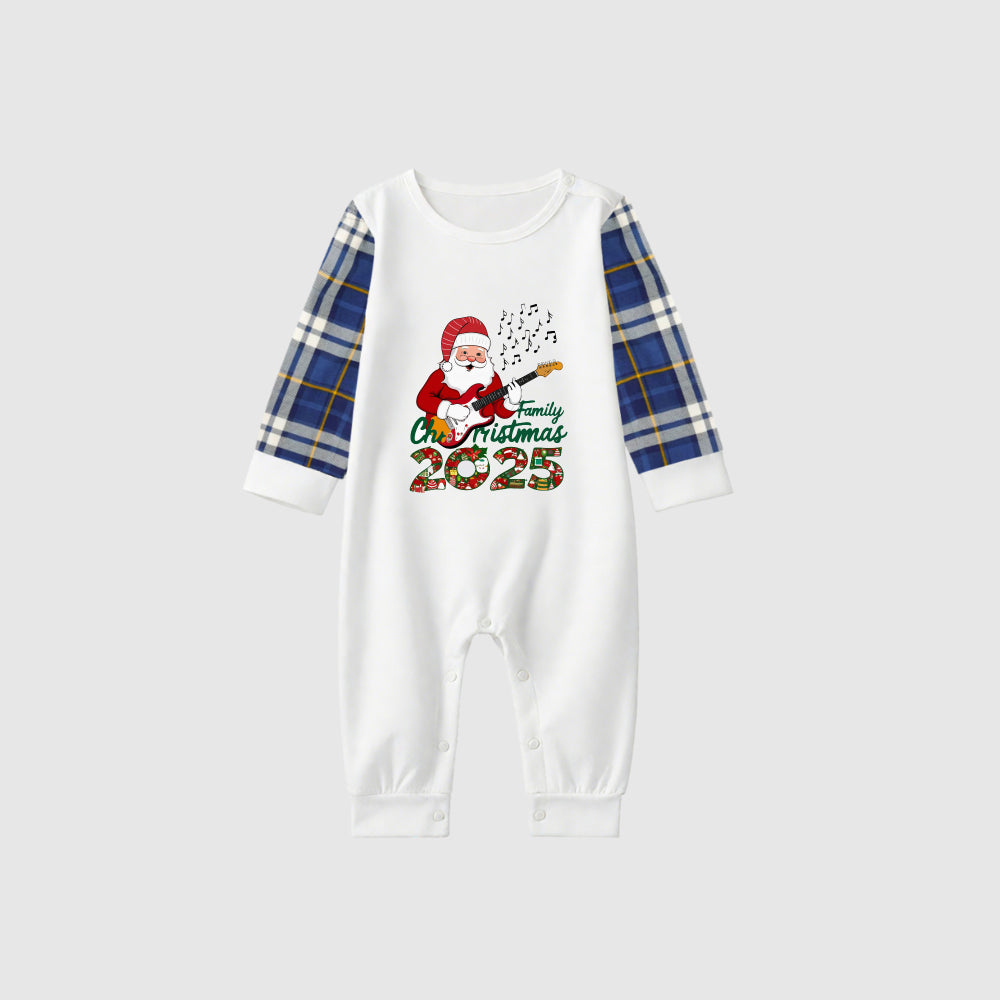 • Christmas Family Matching Pajamas-Blue Raglan Top Blue Plaid Pants Pjs Set with Santa and "Family Christmas" Letter Print