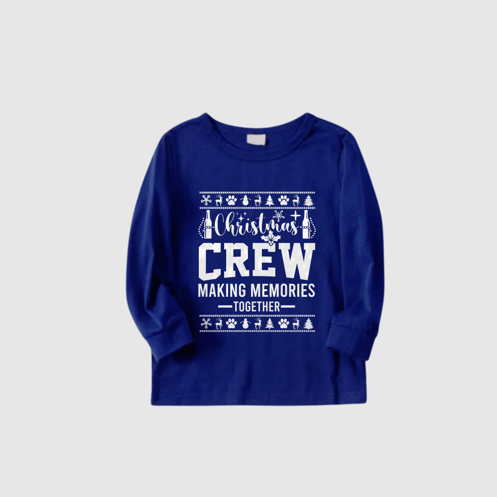 • Christmas Family Matching Pajamas-Cozy Blue Pjs Set with "Christmas Crew Making Memories Together" and Christmas Pattern Print