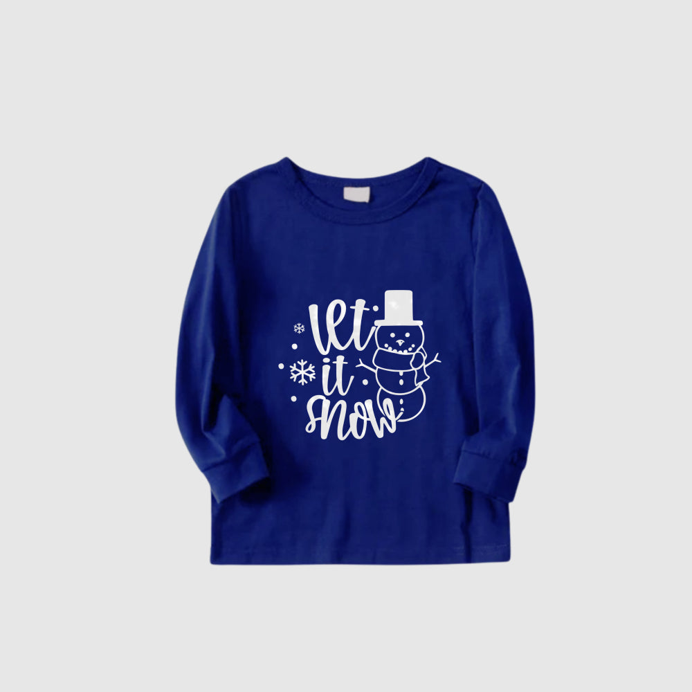• Christmas Family Matching Pajamas-Cozy Blue Pjs Set with Snowman and "Let It Snow" Slogan Print