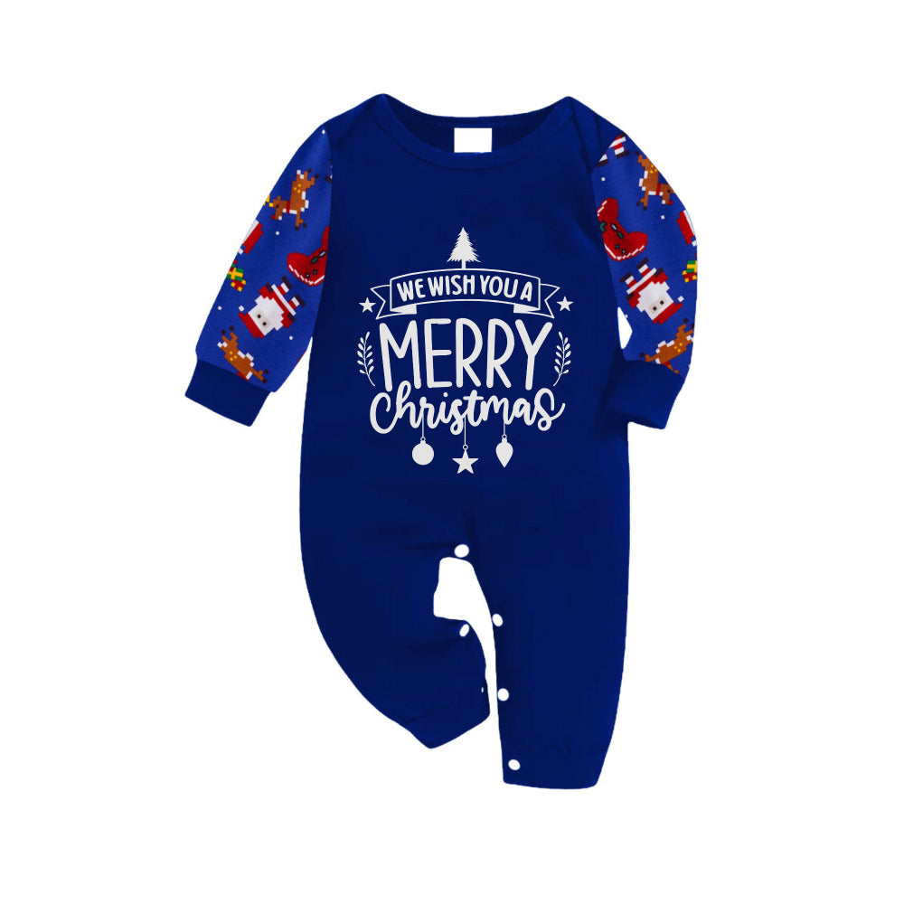 Christmas Family Matching Pajamas-Cozy Blue Pjs Set with "Wish You A Merry Christmas" Slogan Print