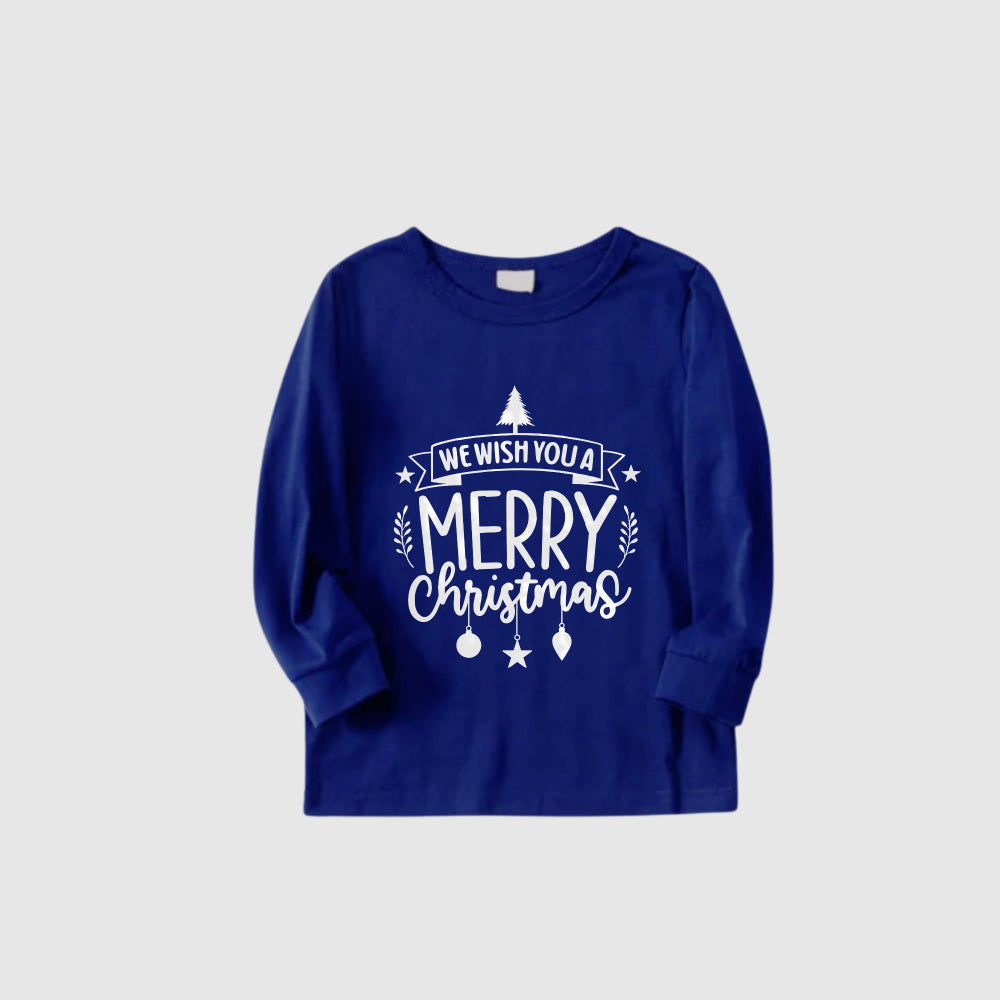 • Christmas Family Matching Pajamas-Cozy Blue Pjs Set with "Wish You A Merry Christmas" Slogan Print