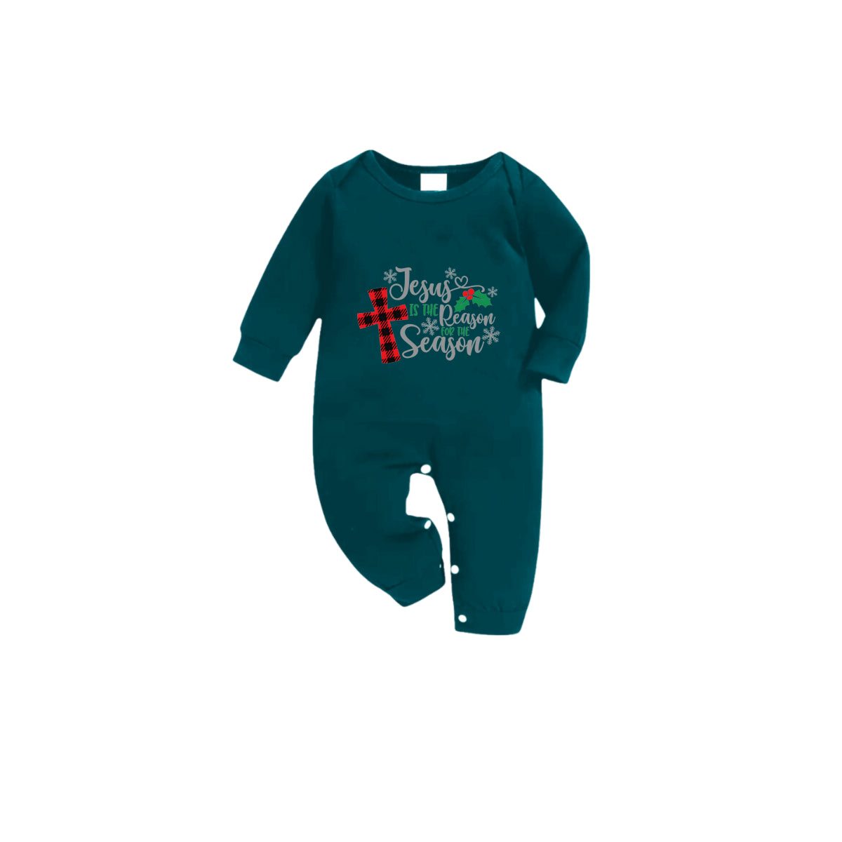 • Christmas Family Matching Pajamas-Dark Green&Deer Patterned Pjs Set with "Jesus Is The Season For The Season" Print