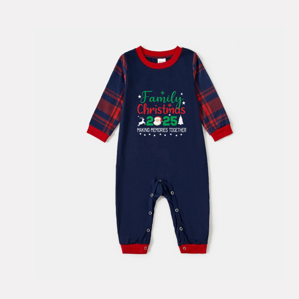 Christmas Family Matching Pajamas-Navy & Red Plaid Pjs Set with "Family Christmas 2026" and Santa Pattern Print