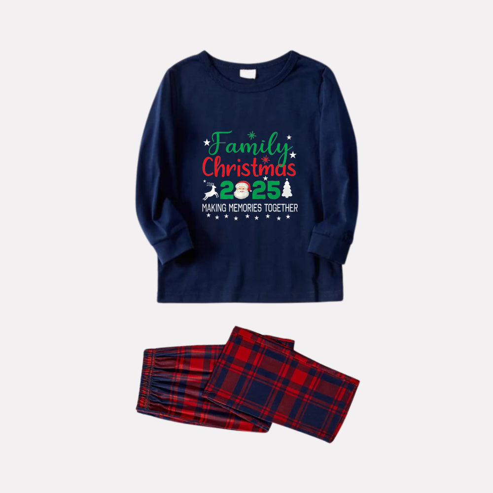 • Christmas Family Matching Pajamas-Navy & Red Plaid Pjs Set with "Family Christmas 2026" and Santa Pattern Print