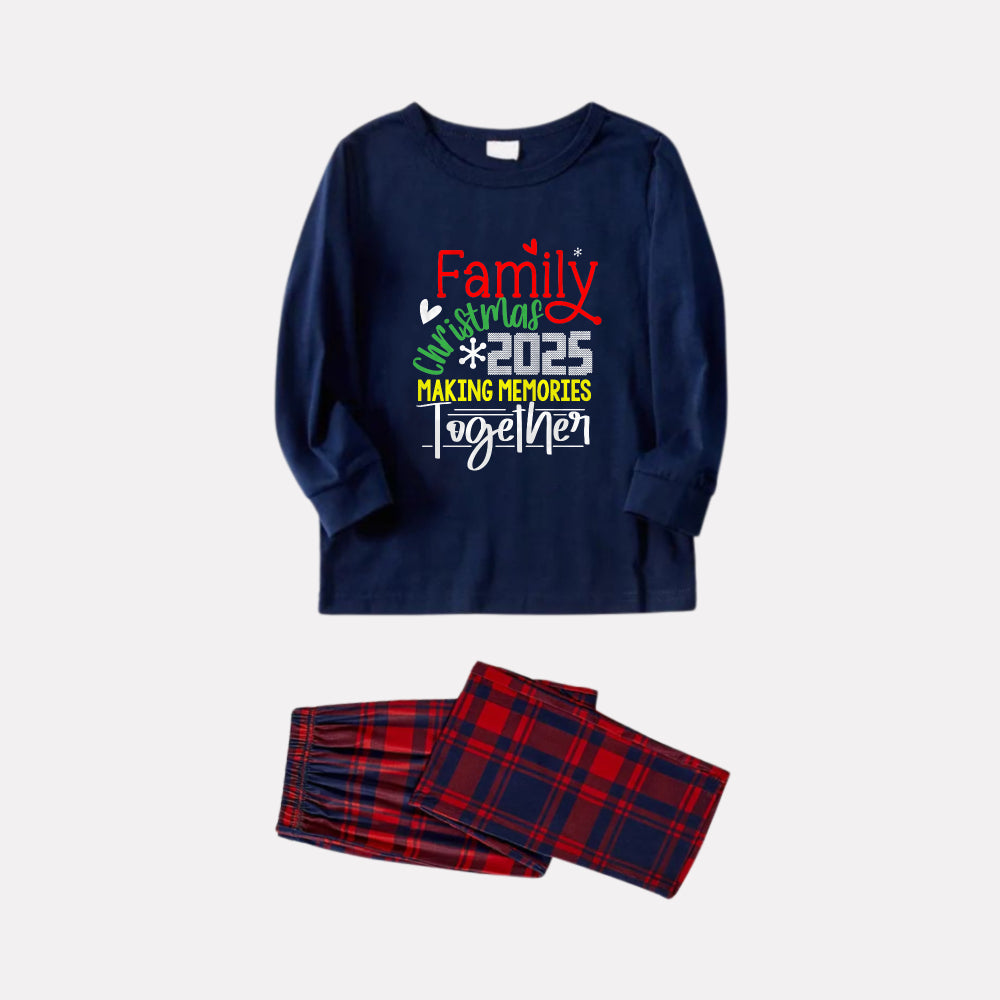 Christmas Family Matching Pajamas-Navy & Red Plaid Pjs Set with "Family Christmas 2026 Making Memories Together" Slogan Print