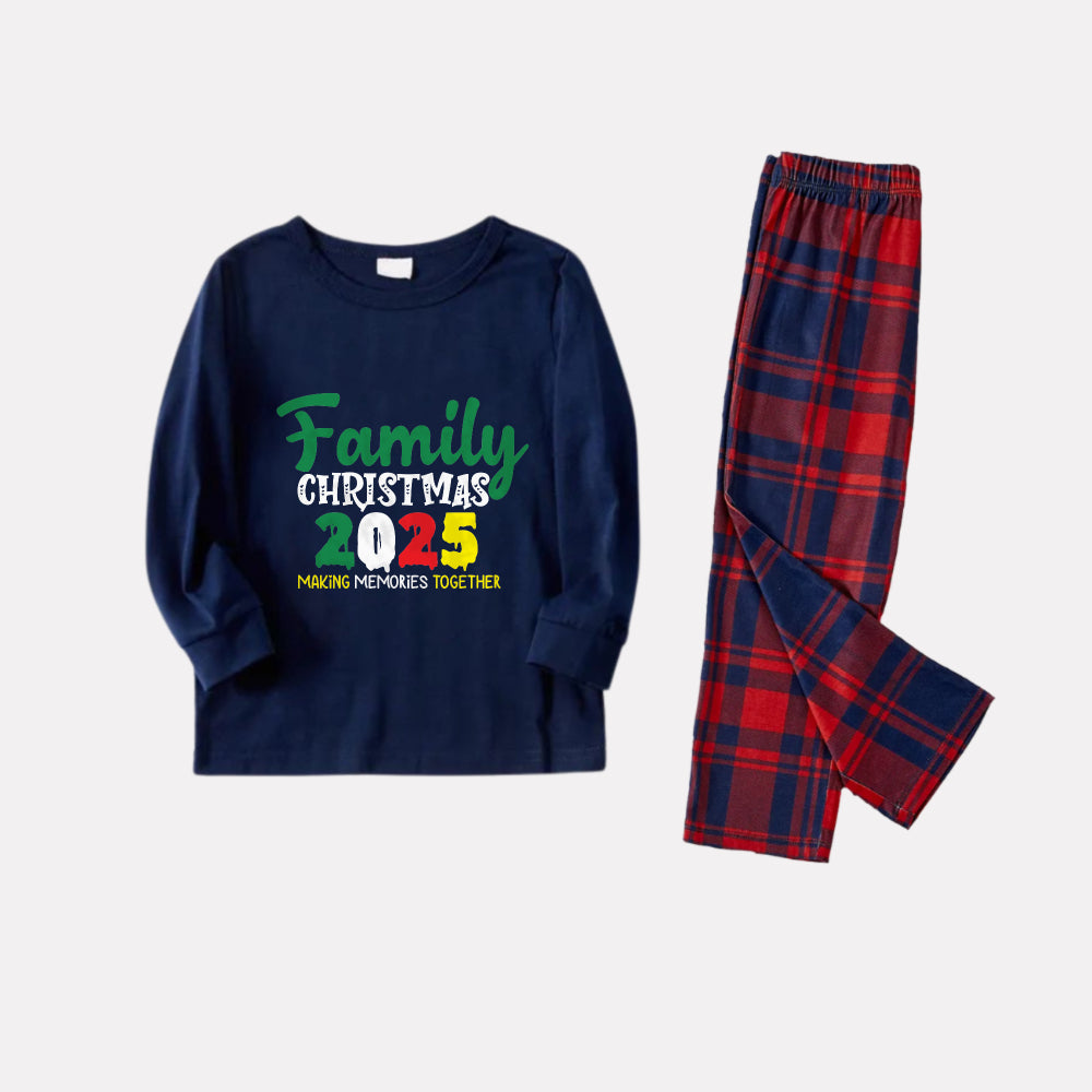 Christmas Family Matching Pajamas-Navy & Red Plaid Pjs Set with "Family Christmas 2026" Text Print