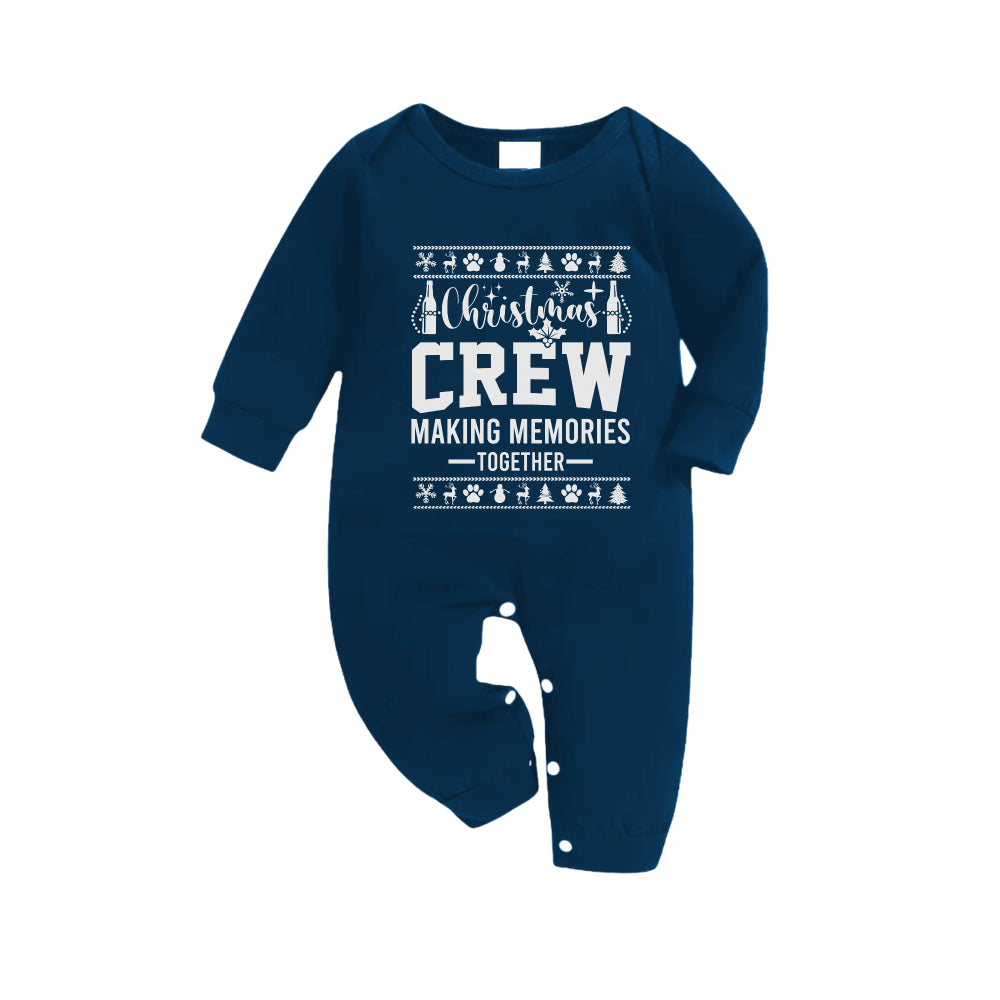 • Christmas Family Matching Pajamas-Navy & Sky Blue Plaid Pjs Set with "Christmas Crew Making Memories Together" and Christmas Pattern Print