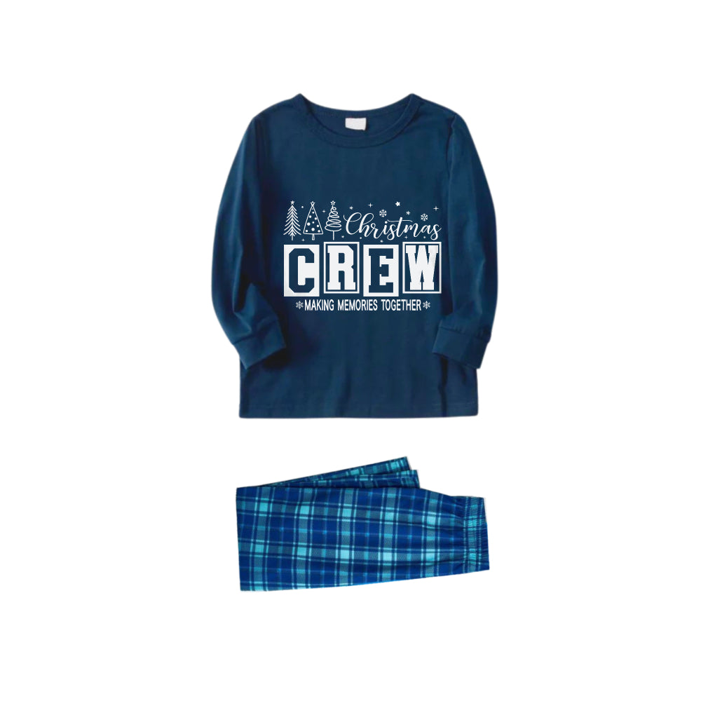 • Christmas Family Matching Pajamas-Navy & Sky Blue Plaid Pjs Set with "Christmas Crew Making Memories Together" Print