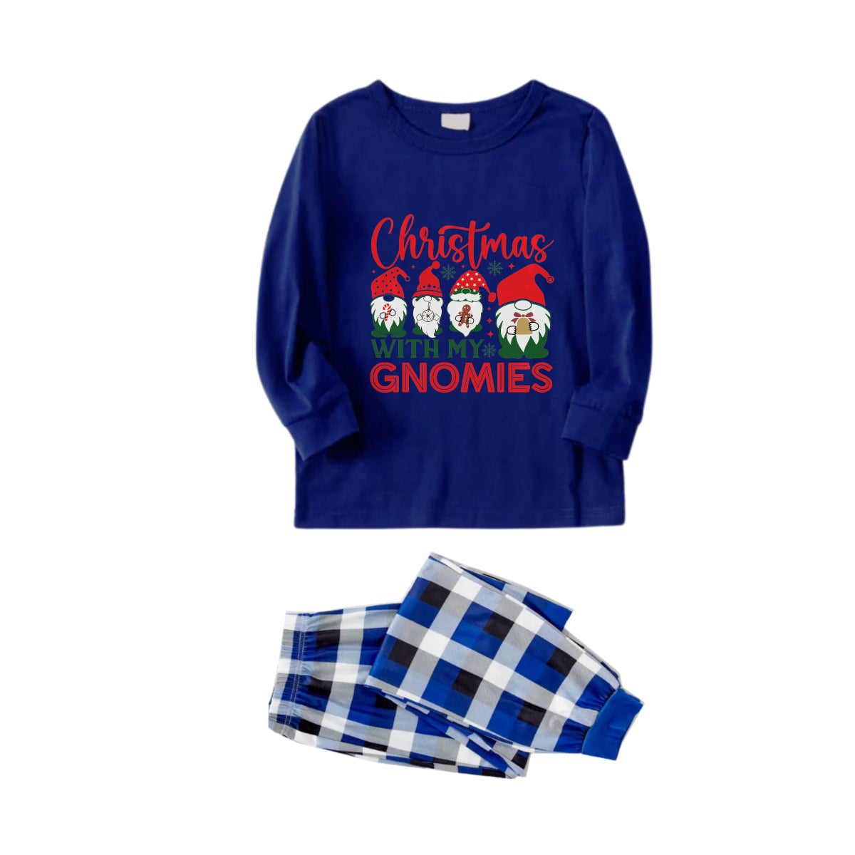 • Christmas Family Matching Pajamas-Navy & White Plaid Pjs Set with "Christmas With My Gnomies" Print