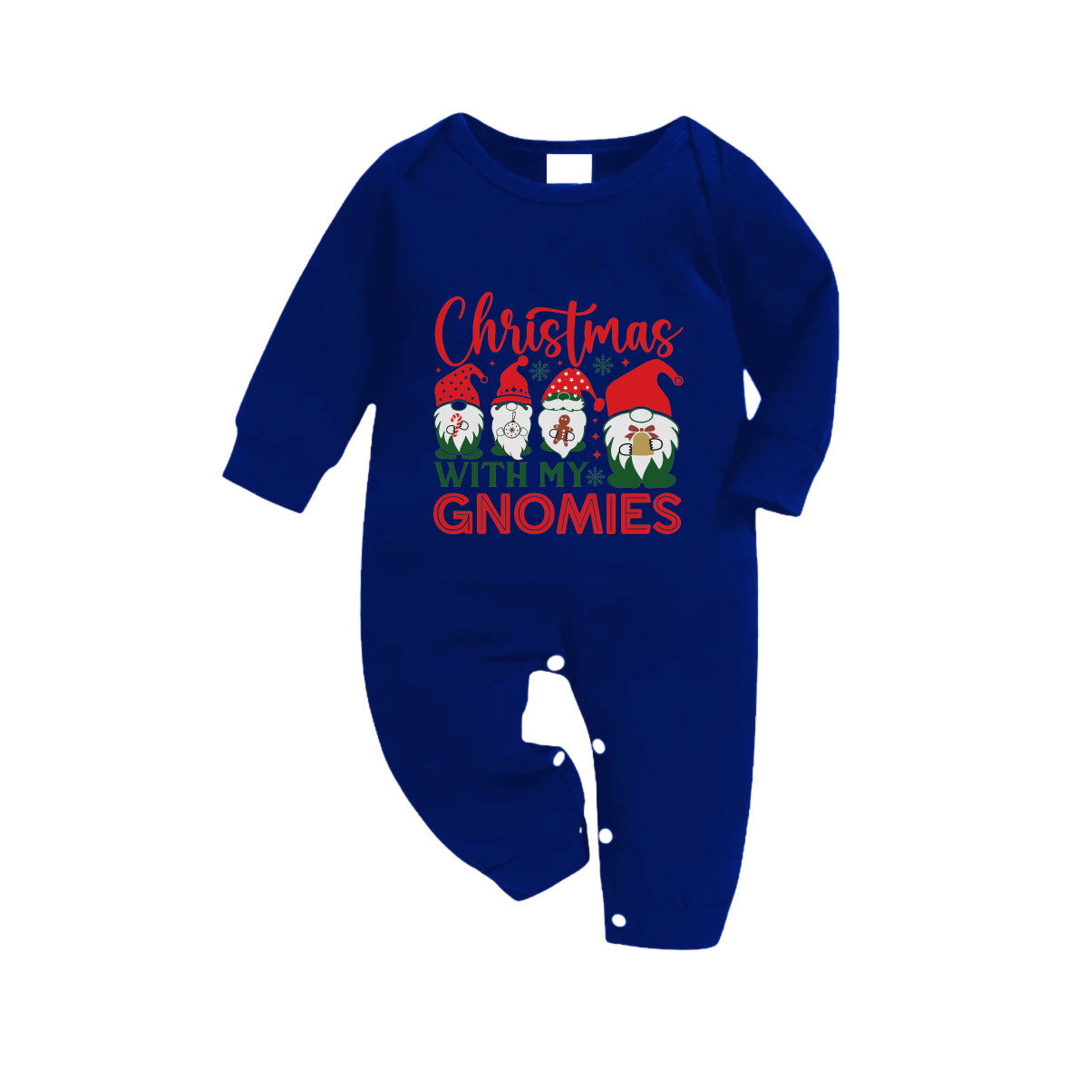 Christmas Family Matching Pajamas-Navy & White Plaid Pjs Set with "Christmas With My Gnomies" Print