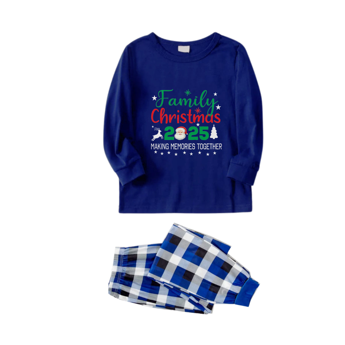 • Christmas Family Matching Pajamas-Navy & White Plaid Pjs Set with "Family Christmas 2026" and Santa Pattern Print