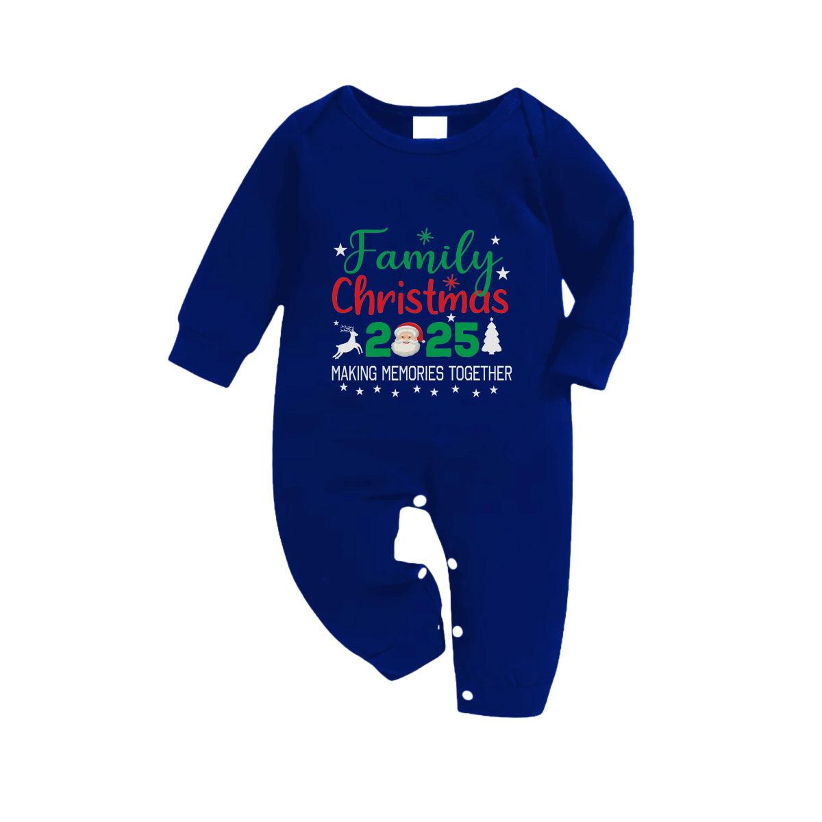Christmas Family Matching Pajamas-Navy & White Plaid Pjs Set with "Family Christmas 2026" and Santa Pattern Print