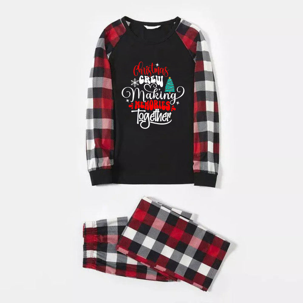 • Christmas Family Matching Pajamas-Red and Gray Plaid Pjs set with "Christmas Crew Making Memories Together" Artistic Font Slogan Print
